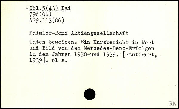 Daimler-Benz Aktiengesellschaft Taten beweisen, Ein Kurzbericht in Wort und Bild von den Mercedes-Benz-Erfolgen in den Jahren 1938-und 1939. [Stuttgart, 1939].