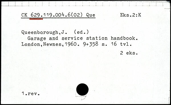 Queenbo.rough, J. (ed.) Garage and service station handbook.