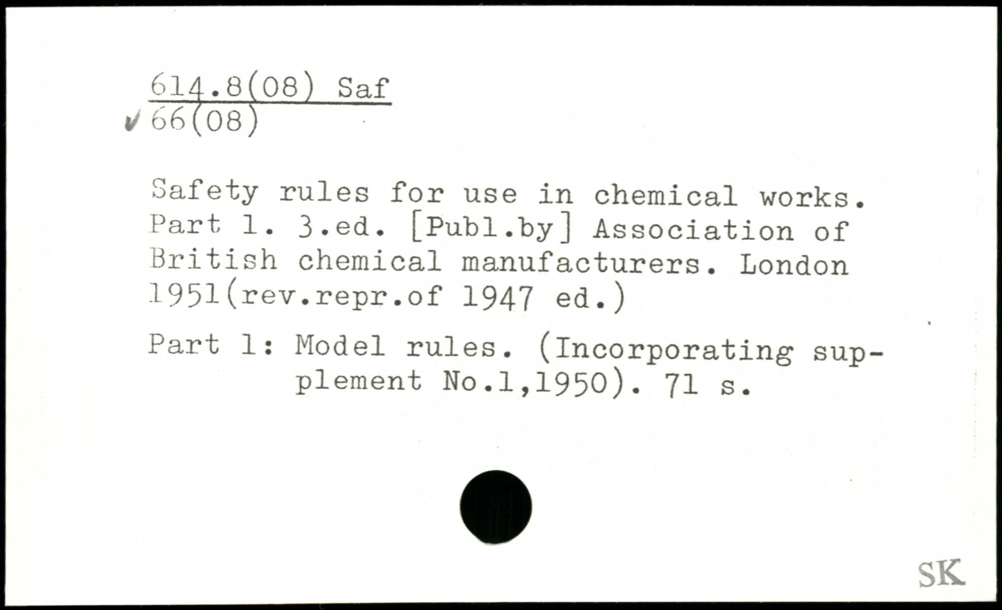 Safety rules for use in chemical works. Part 1.