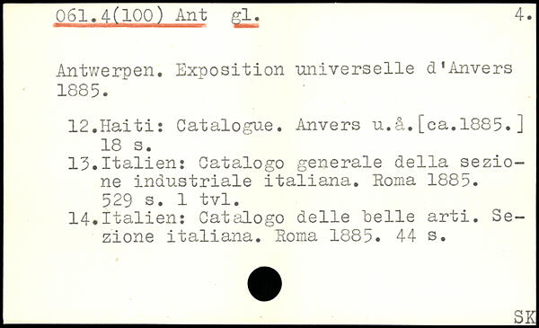 Antwerpen. Exposition universelle d'Anvers 1885. 12.Haiti: Catalogue. Anvers u.â.[ca.1885.]