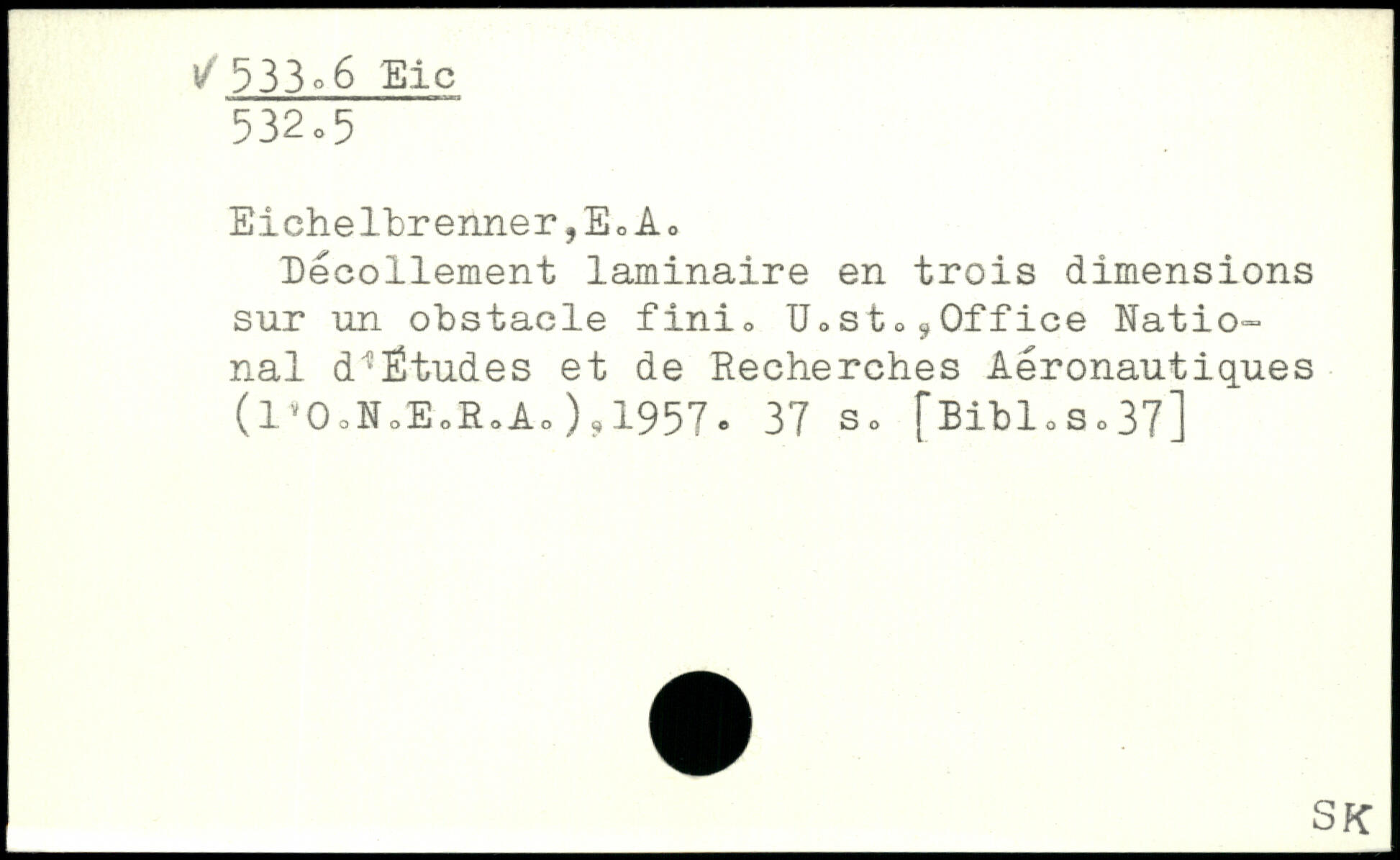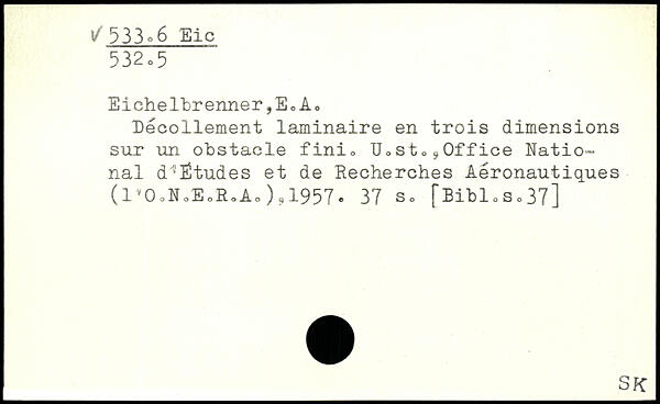 Eichelbrenner,EcAo Décollement laminaire en trois dimensions sur un obstacle fini. UostOÿ0ffice National d'Études et de Recherches Aéronautiques (l'OoNoEoSoAo),1957