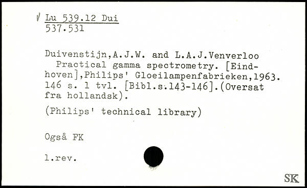 Luivenstijn,A.J. W. and L.A.J.Venverloo Practical gamma spectrometry.