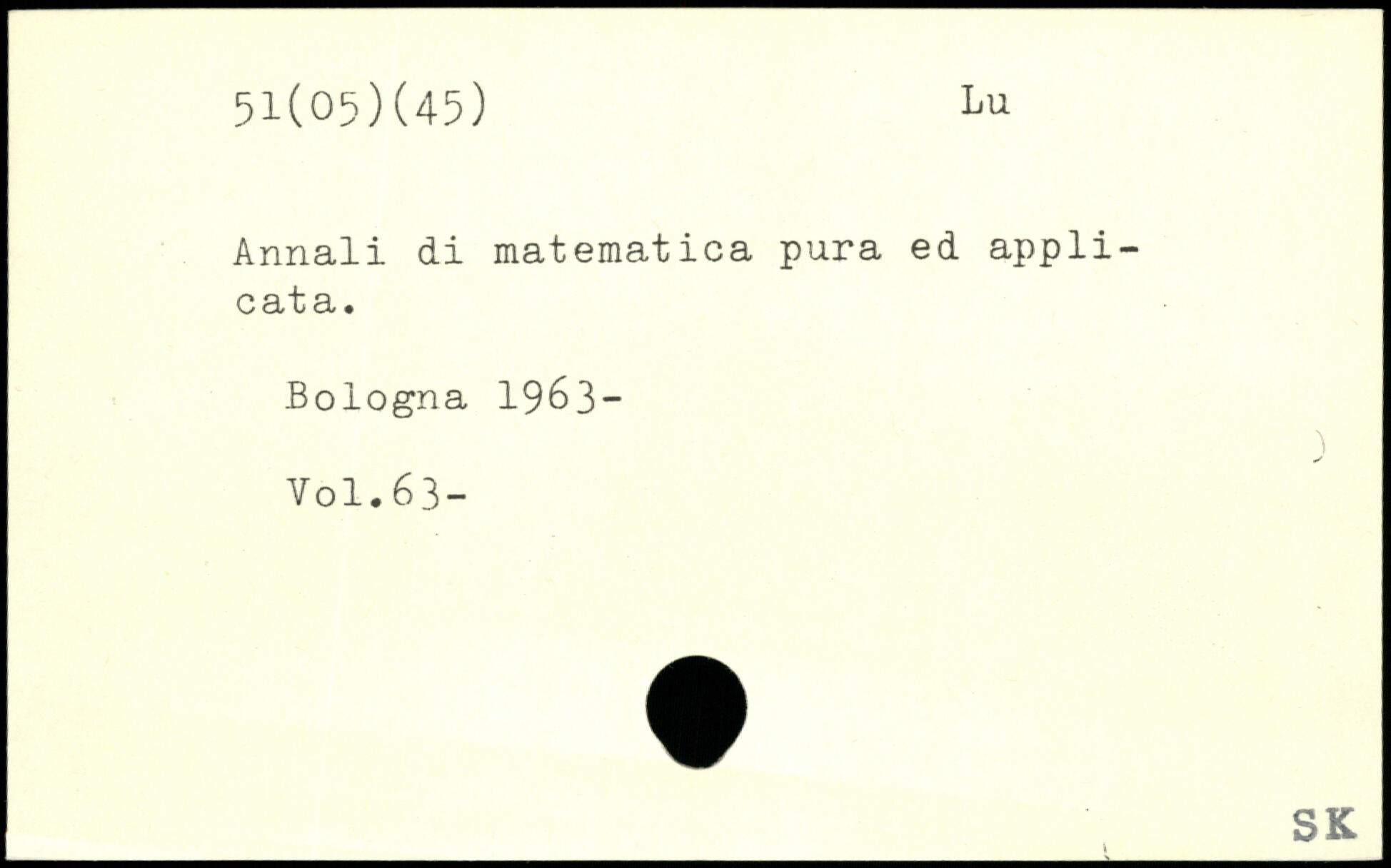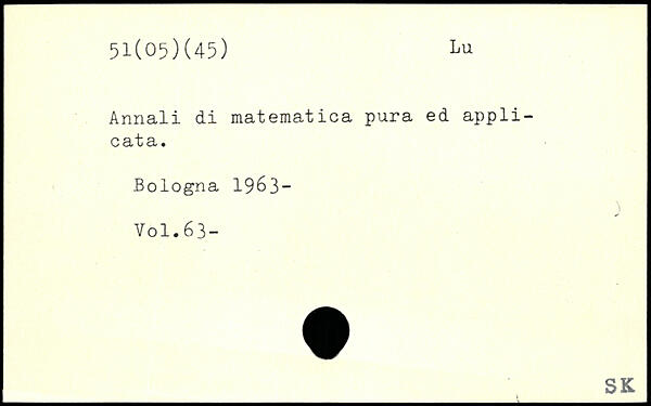 Annali di matematica pura ed appli-c at a. Bologna 1963-
