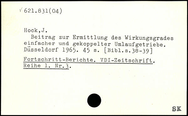 Beitrag zur Ermittlung des Wirkungsgrades einfacher und gekoppelter Umlaufgetriebe. Düsseldorf 1965.