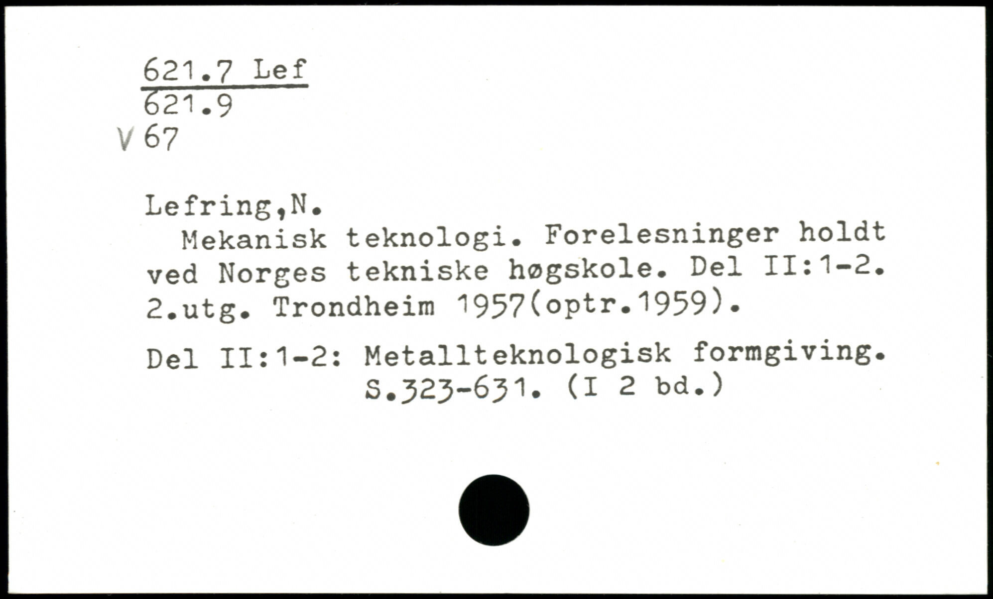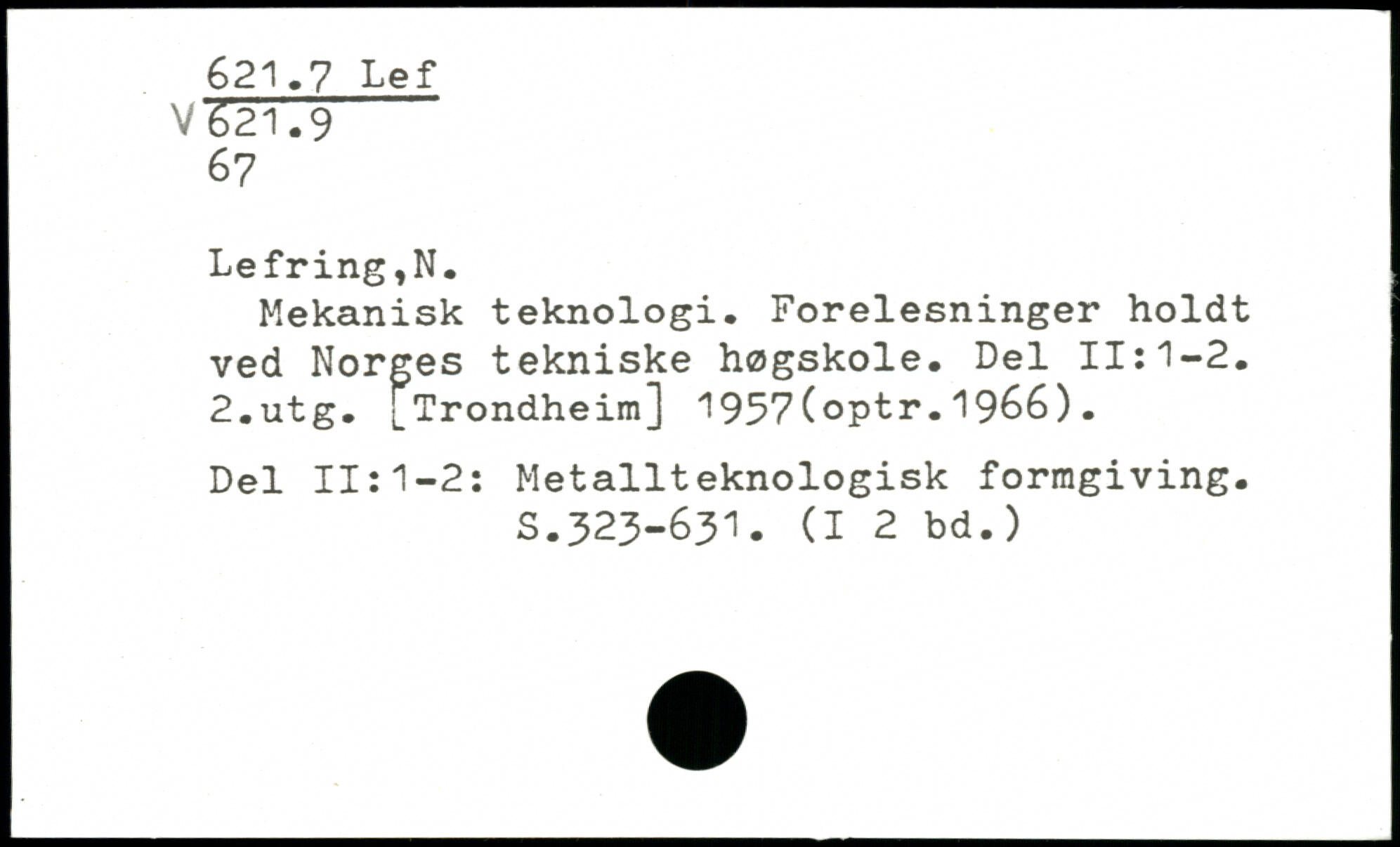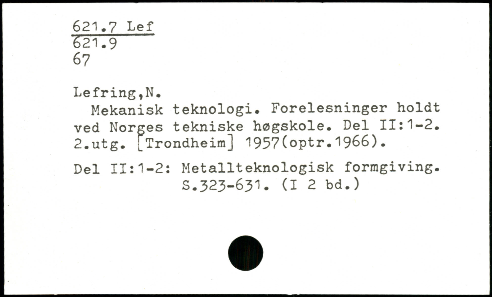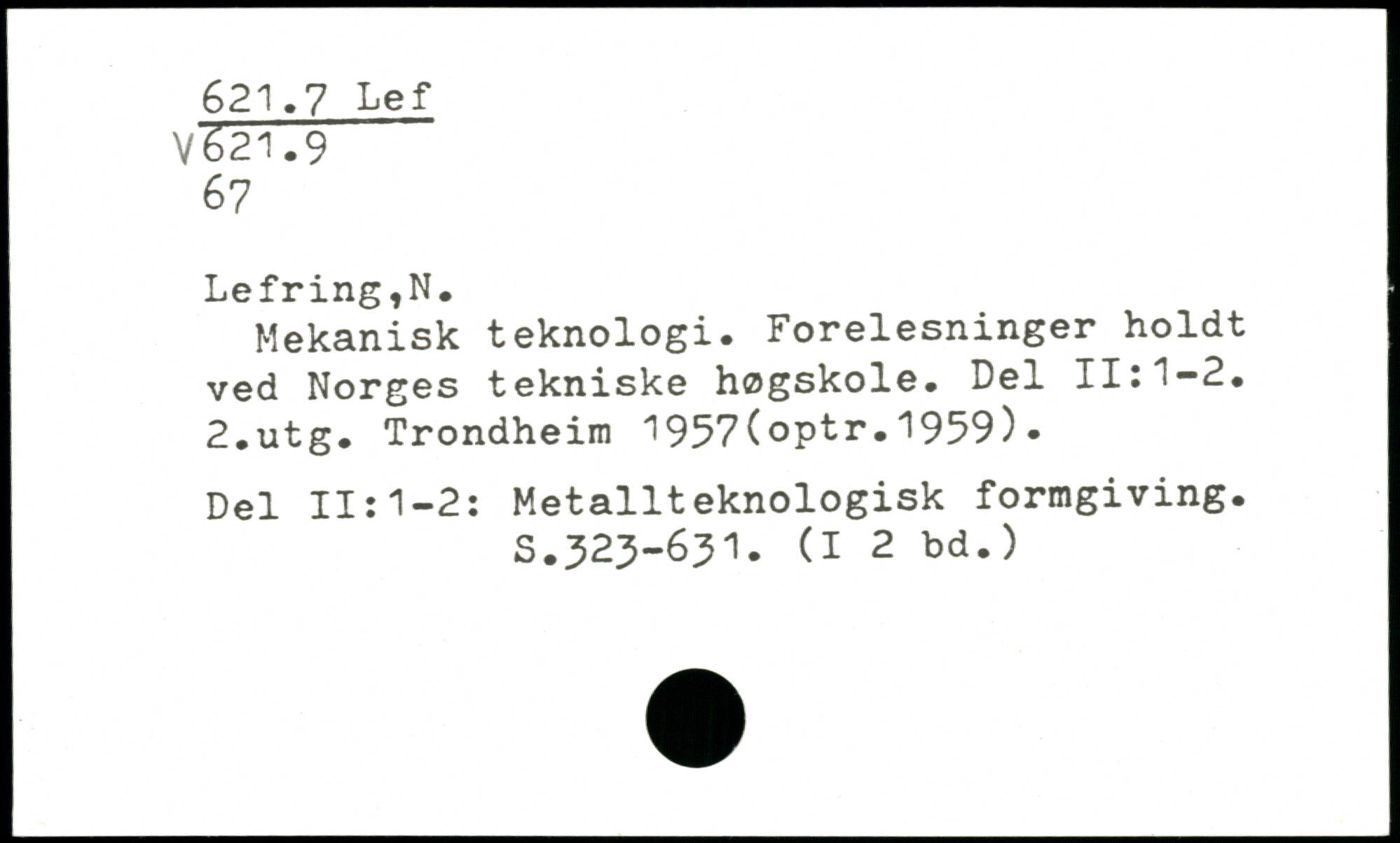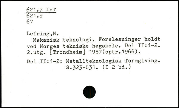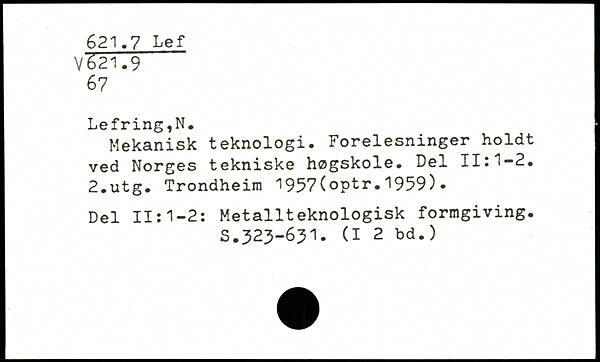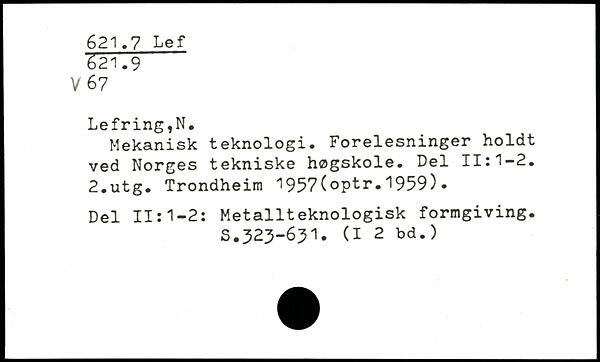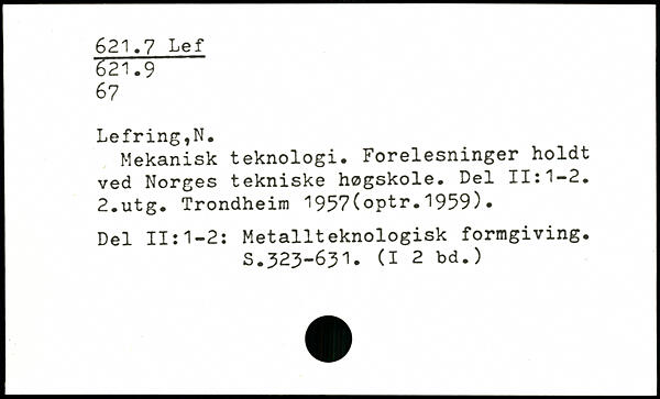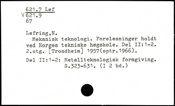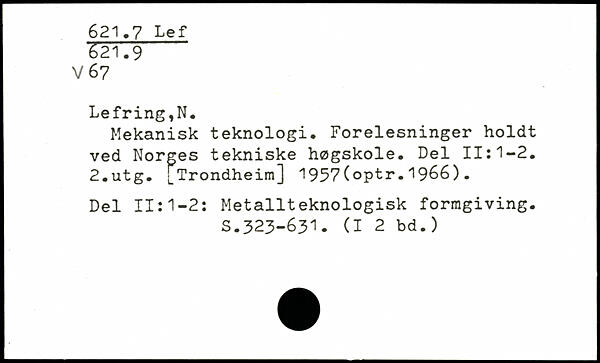 Mekanisk teknologi. Forelesninger holdt ved Norges tekniske høgskole. Del 11:1-2. 2.utg. ^