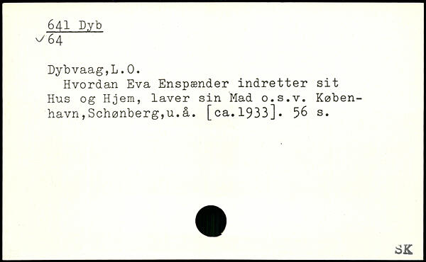 Hvordan Eva Enspænder indretter sit Hus og Hjem, laver sin Mad o.s.v. København , Schønberg, u. å. [ca.1933].