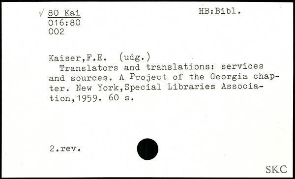 Translators and translations: services and sources. A Project of the Georgia chapter.
