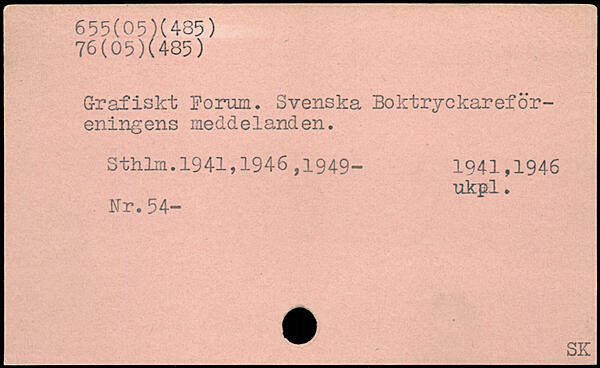 Grafiskt Forum. Svenska Boktryckareföreningens meddelanden. Sthlm. 1941,1946,1949- 1941,1946 ukpl. . Nr.54-