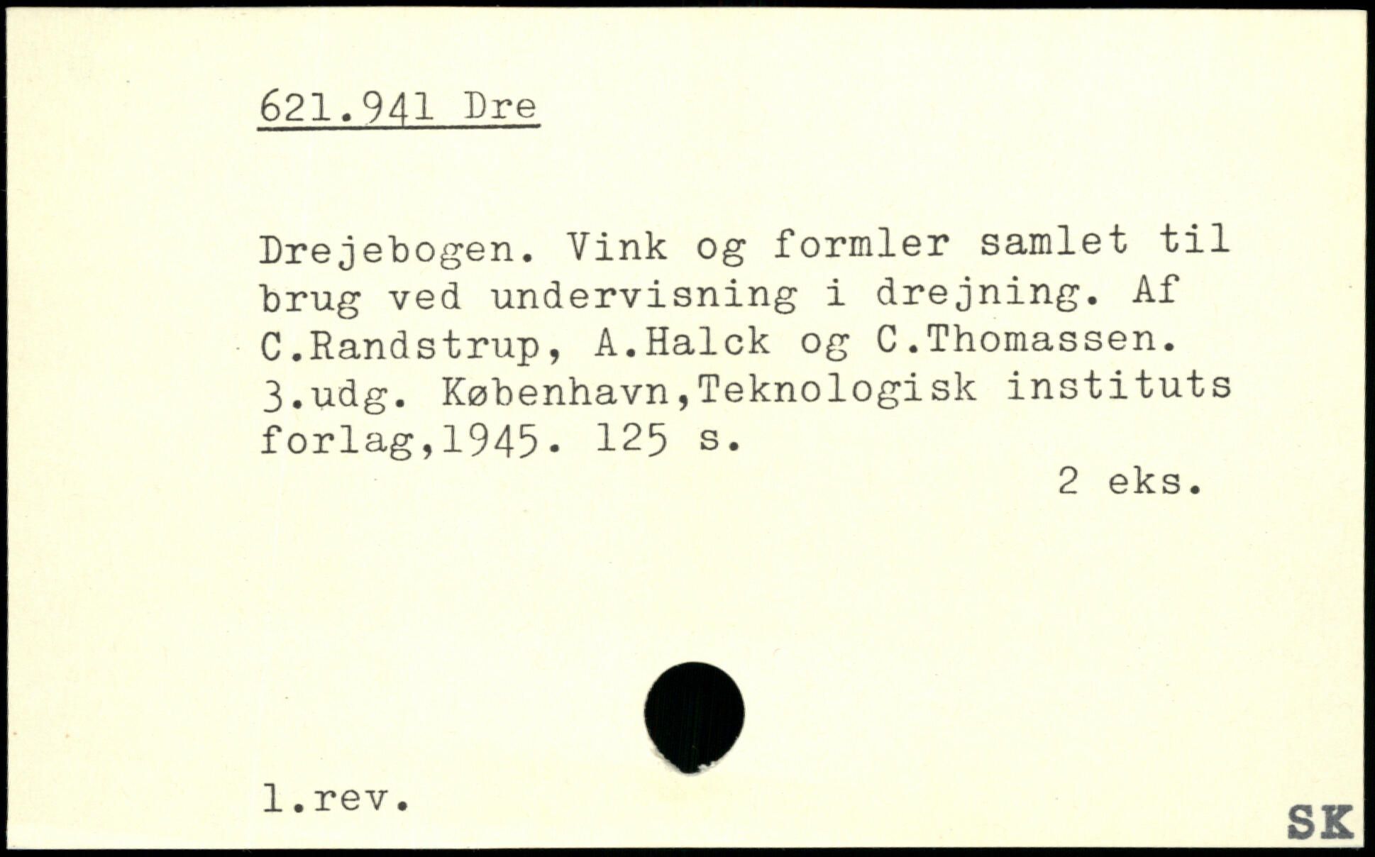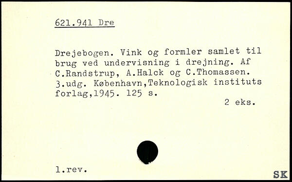 Drejebogen. Vink og formler samlet til brug ved undervisning i drejning. Af C.Randstrup, A.Halek og C.Thomassen.