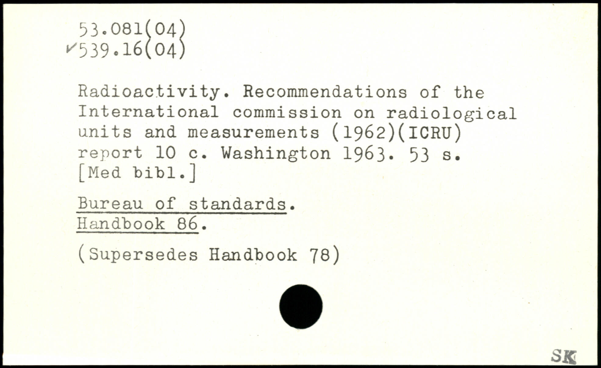 Radioactivity. Recommendations of the International commission on radiological units and measurements (1962)(lCRU) report 10 c.