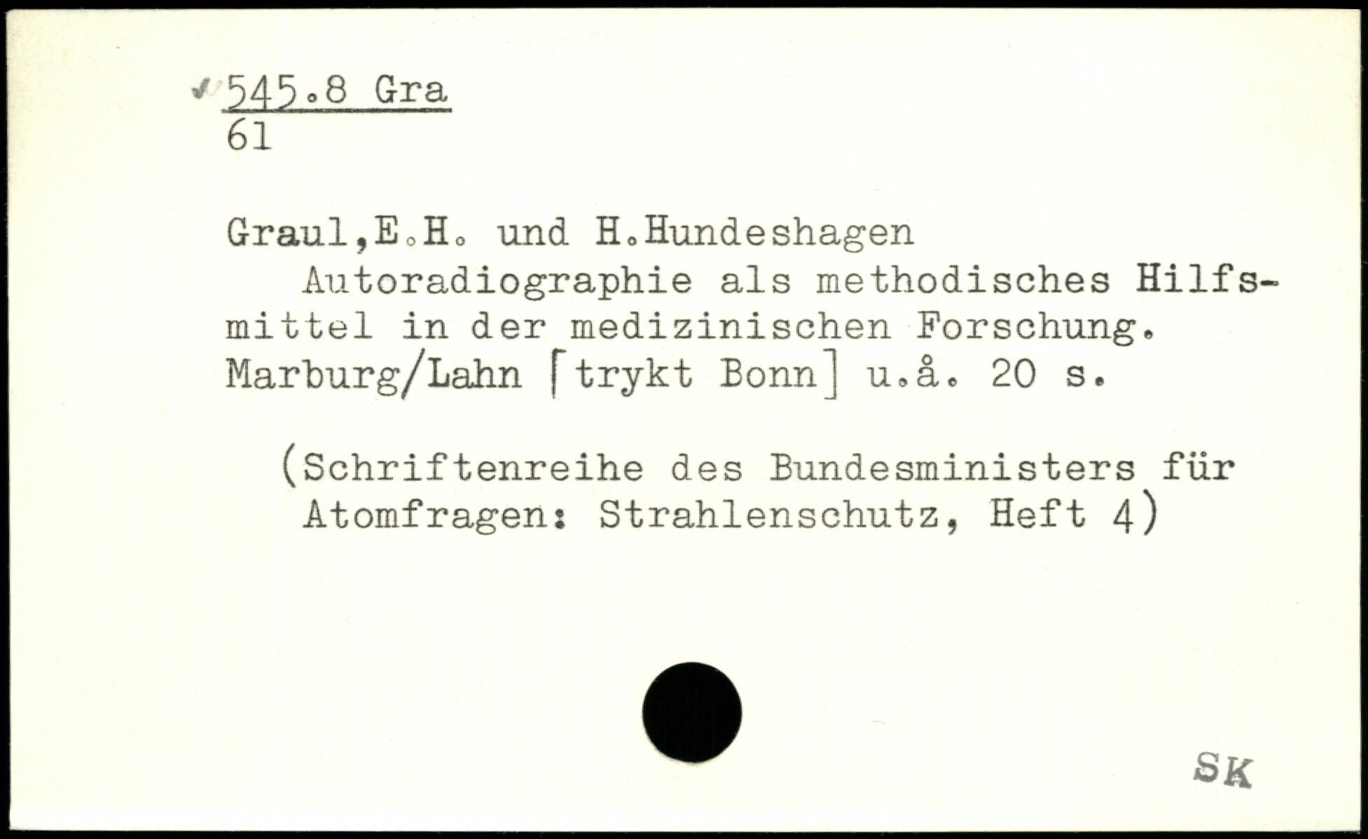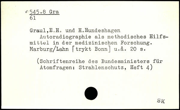 Autoradiographie als methodisches Hilfsmittel in der medizinischen Forschung. Marburg/Lahn ftrykt Bonn] u.ä.