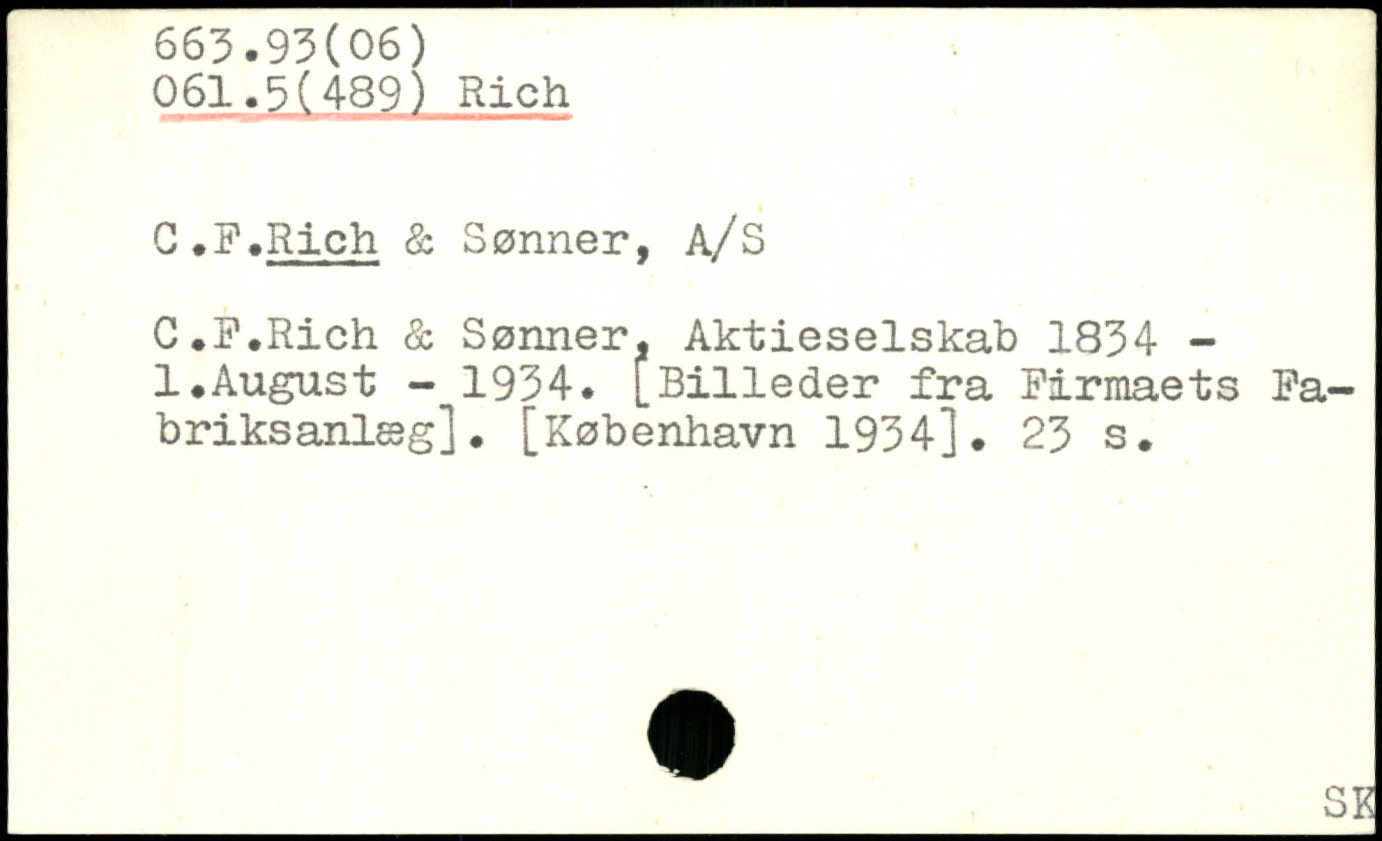 G .F.Rich & Sønner, A/S C.F.Rich & Sønner, Aktieselskab 1834 -1.August - 1934. [Billeder fra Firmaets Fabriksanlæg].