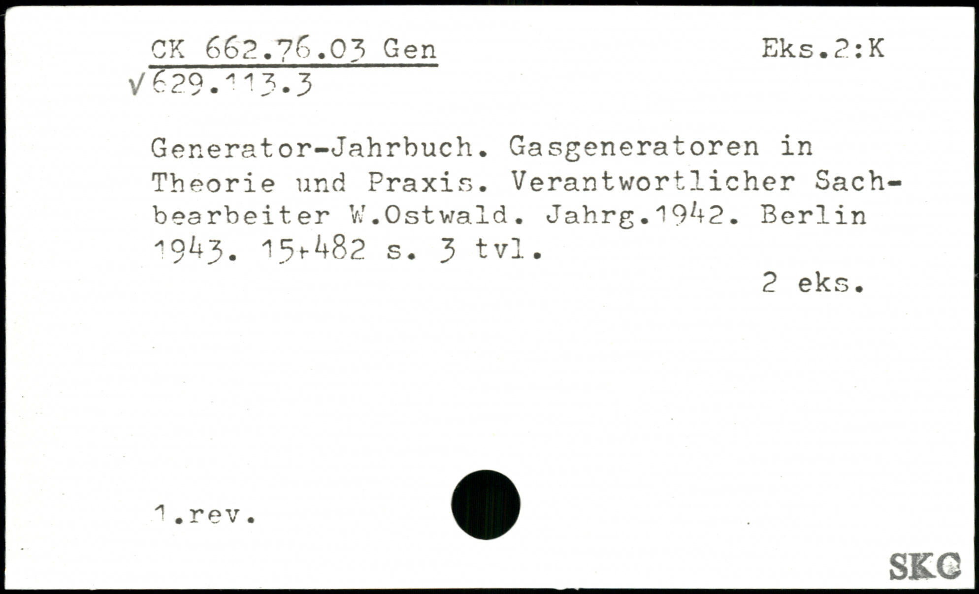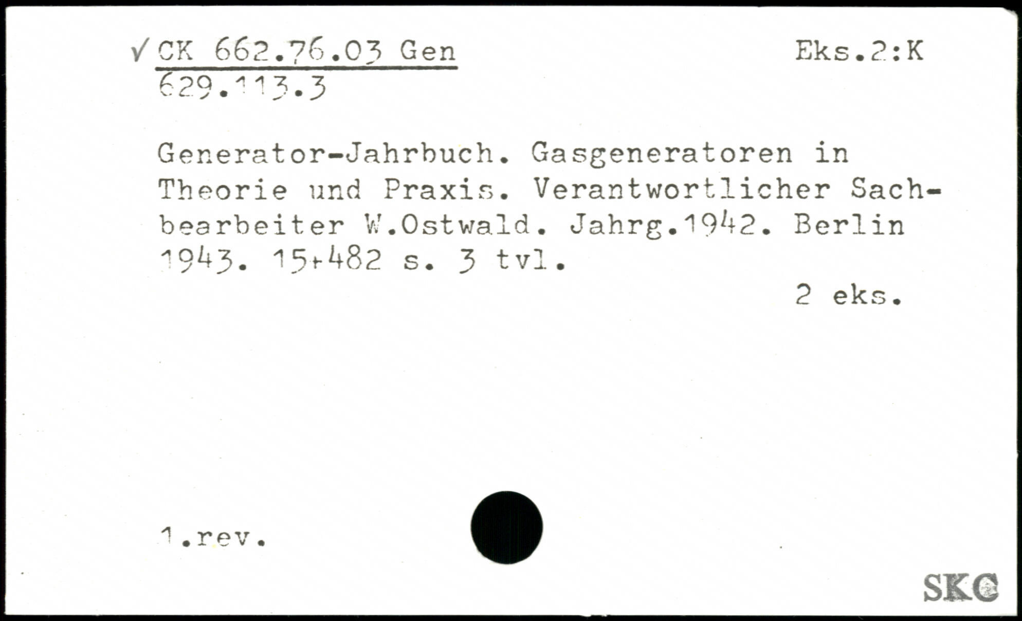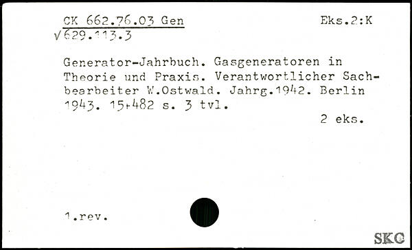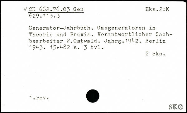Generator-Jahrbuch. Gasgeneratoren in Theorie und Praxis. Verantwortlicher Sachbearbeiter V.T.Ostwald. Jahrg.19^2. Berlin 19^3- 15+^