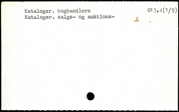 Kataloger, boghandlere 017.4(1/9) Kataloger, salgs- og auktions- ^