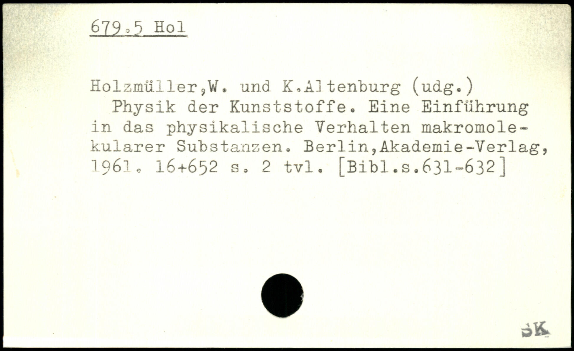Holzmüller?W. -und K. Altenburg (udg.) Physik, der Kunststoffe. Eine Einführung in das physikalische Verhalten makromolekularer Substanzen.