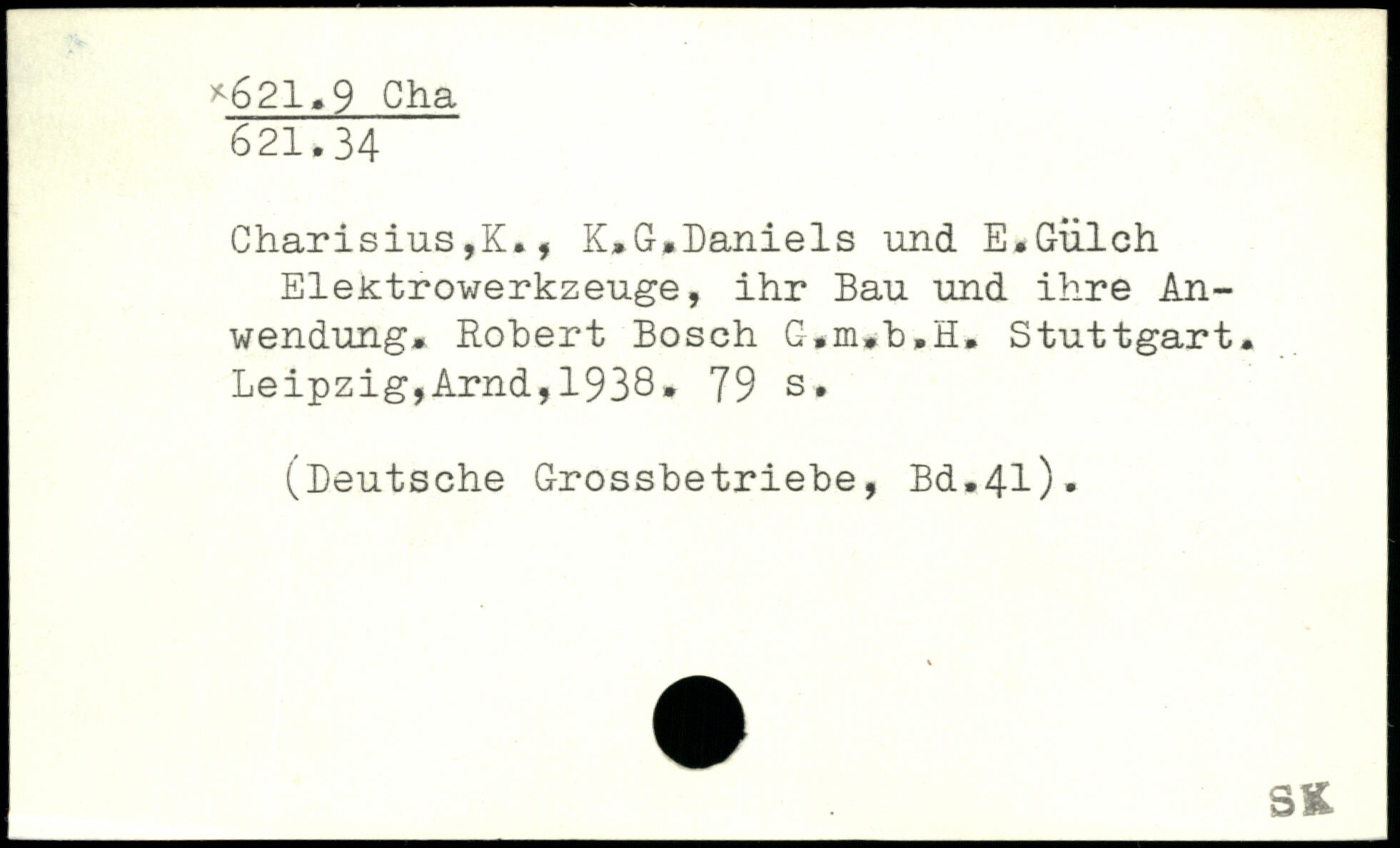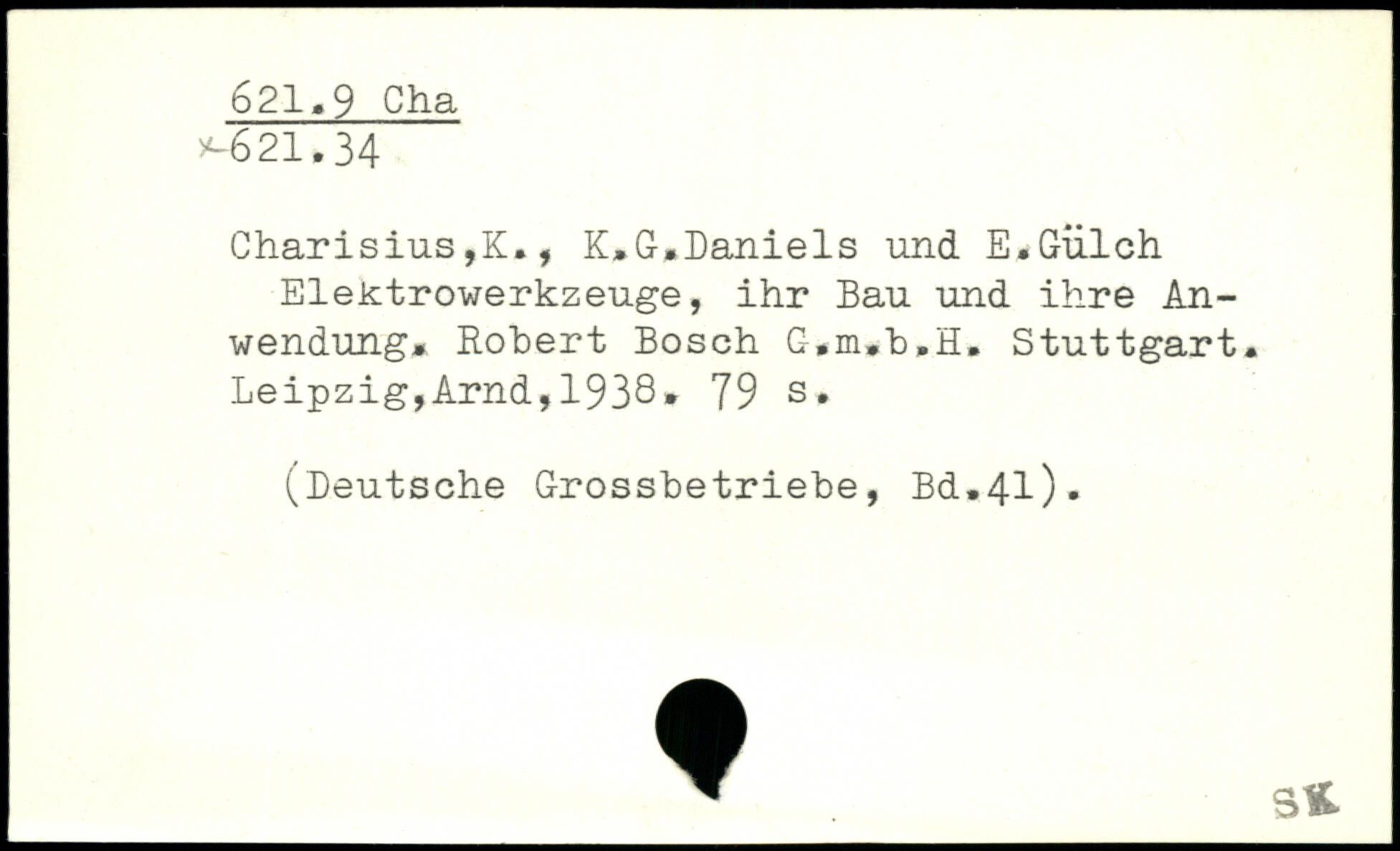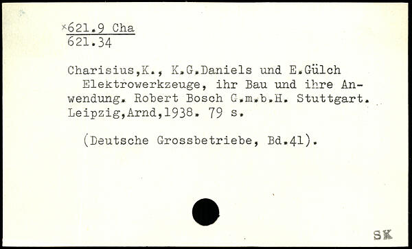 Charisius,K., K.G,Daniels und E.Gülch Elektrowerkzeuge, ihr Bau und ihre Anwendung. Robert Bosch G.m.b.H. Stuttgart.
