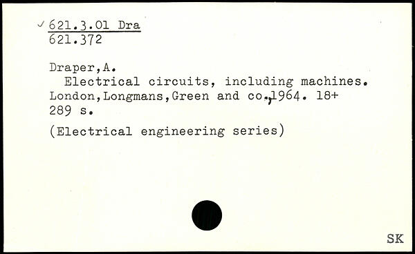 Electrical circuits, including machines. London, Longmans , Green and co.j1964. 18+