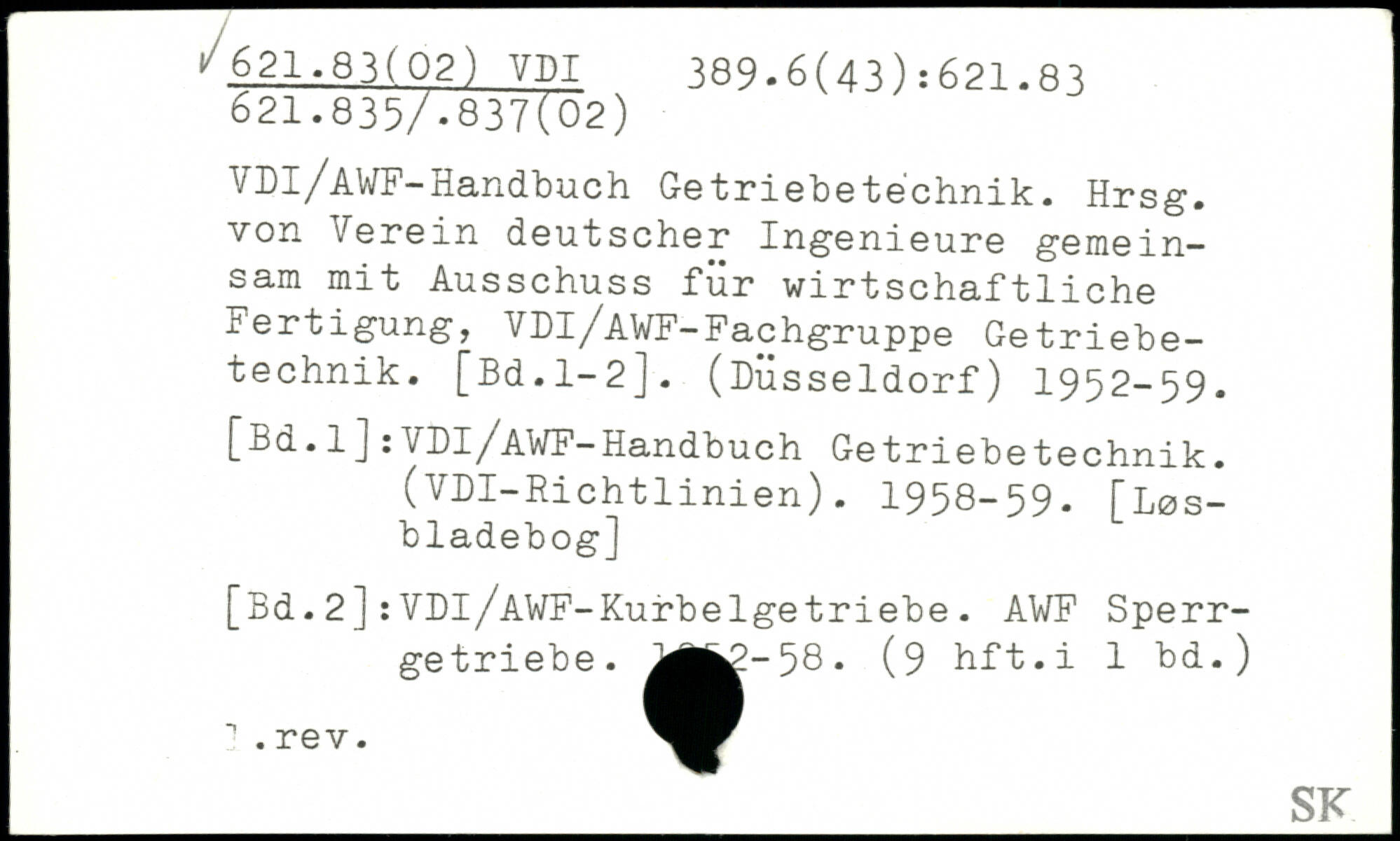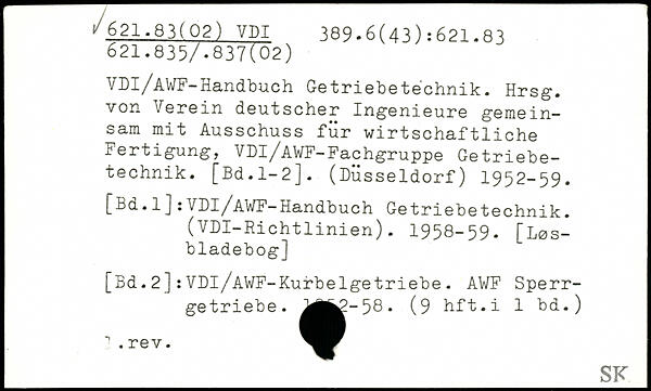 VDl/AWF-Handbuch Getriebetechnik. Hrsg, von Verein deutscher Ingenieure gemeinsam mit Ausschuss für wirtschaftliche Fertigung, VDl/AWF-Fachgruppe Getriebetechnik. [