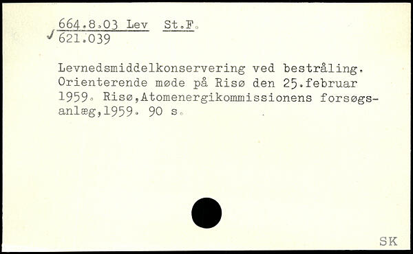 Levnedsmiddelkonservering ved bestråling. Orienterende møde på Risø den 25.februar 1959.