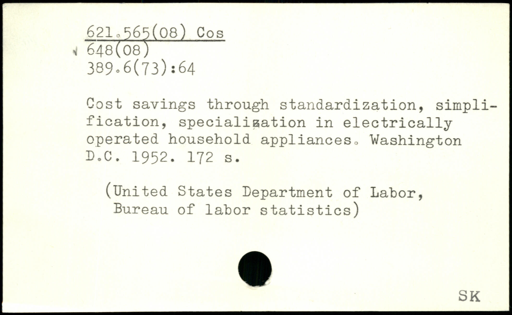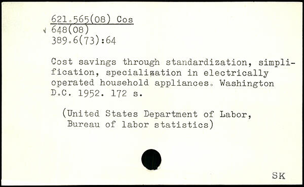 Cost savings through standardization, simplification, specialisation in electrically operated household appliances, Washington D.C. 1952.