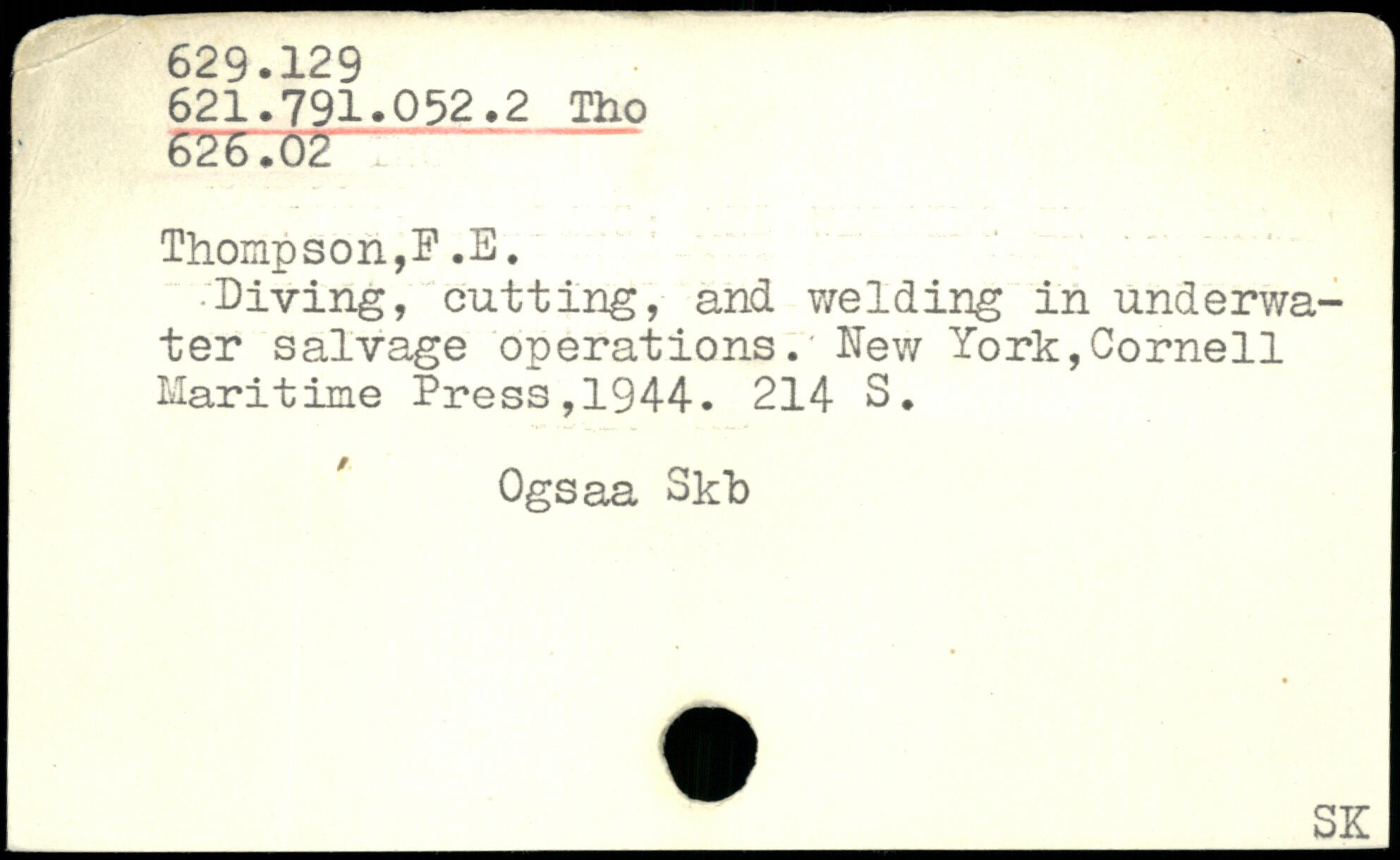 Diving, cutting, and v/elding in underwa-ter salvage operations.' hew