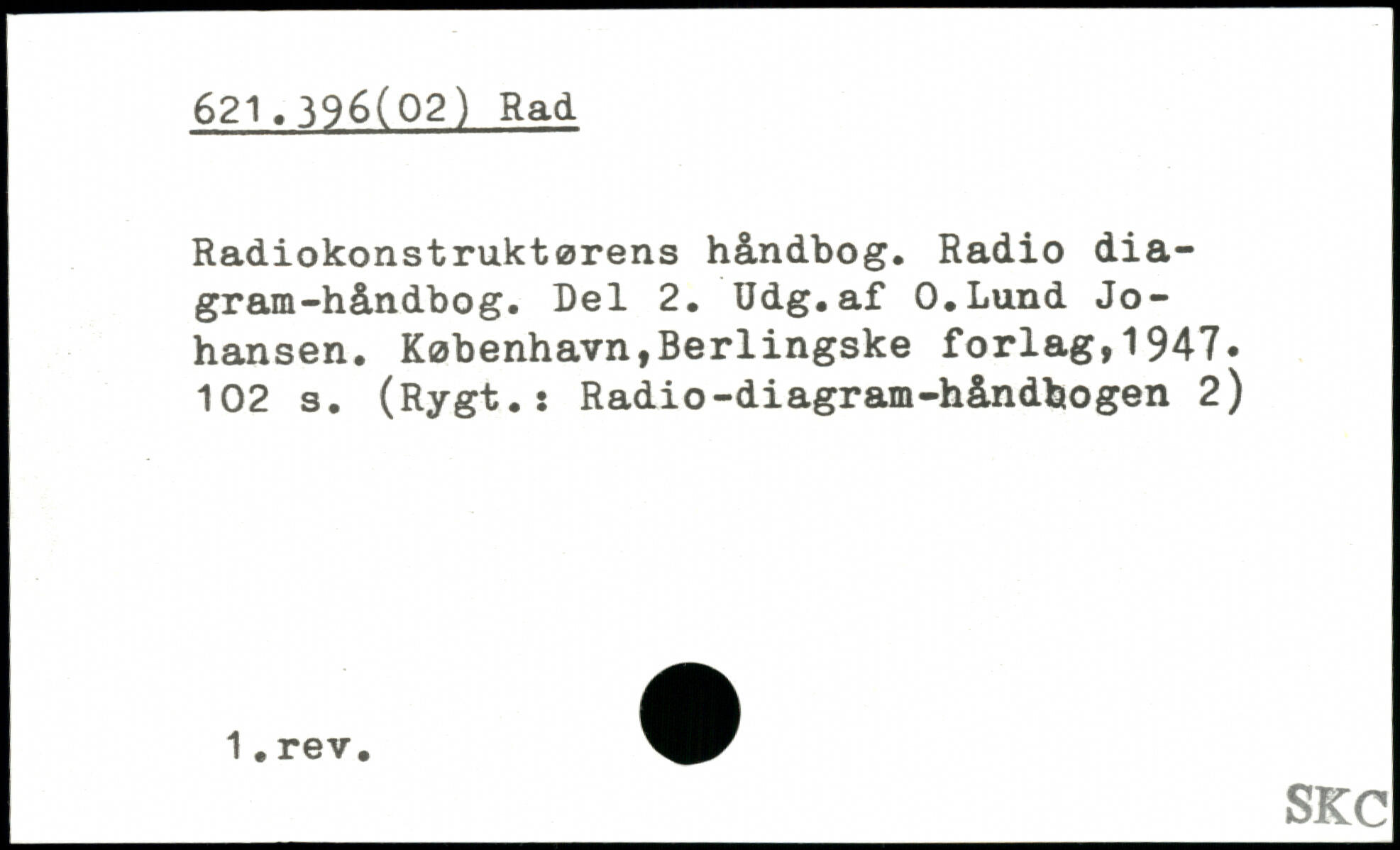 Radiokonstruktørens håndbog. Radio diagram-håndbog. Del 2. Udg.af O.Lund Johansen.