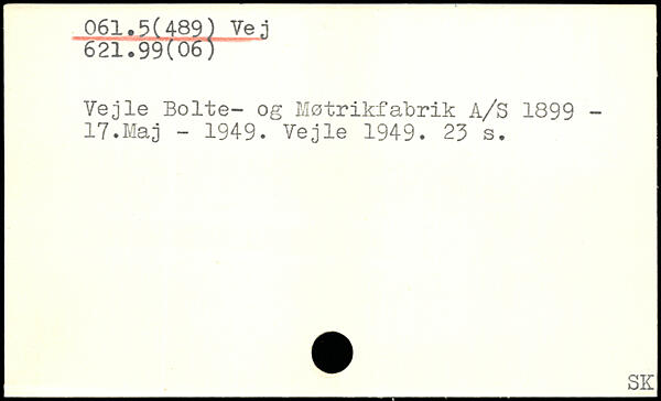 Vejle Bolte- og Møtrikfabrik A/5 1899 -17.Maj - 1949. Vejle 1949.