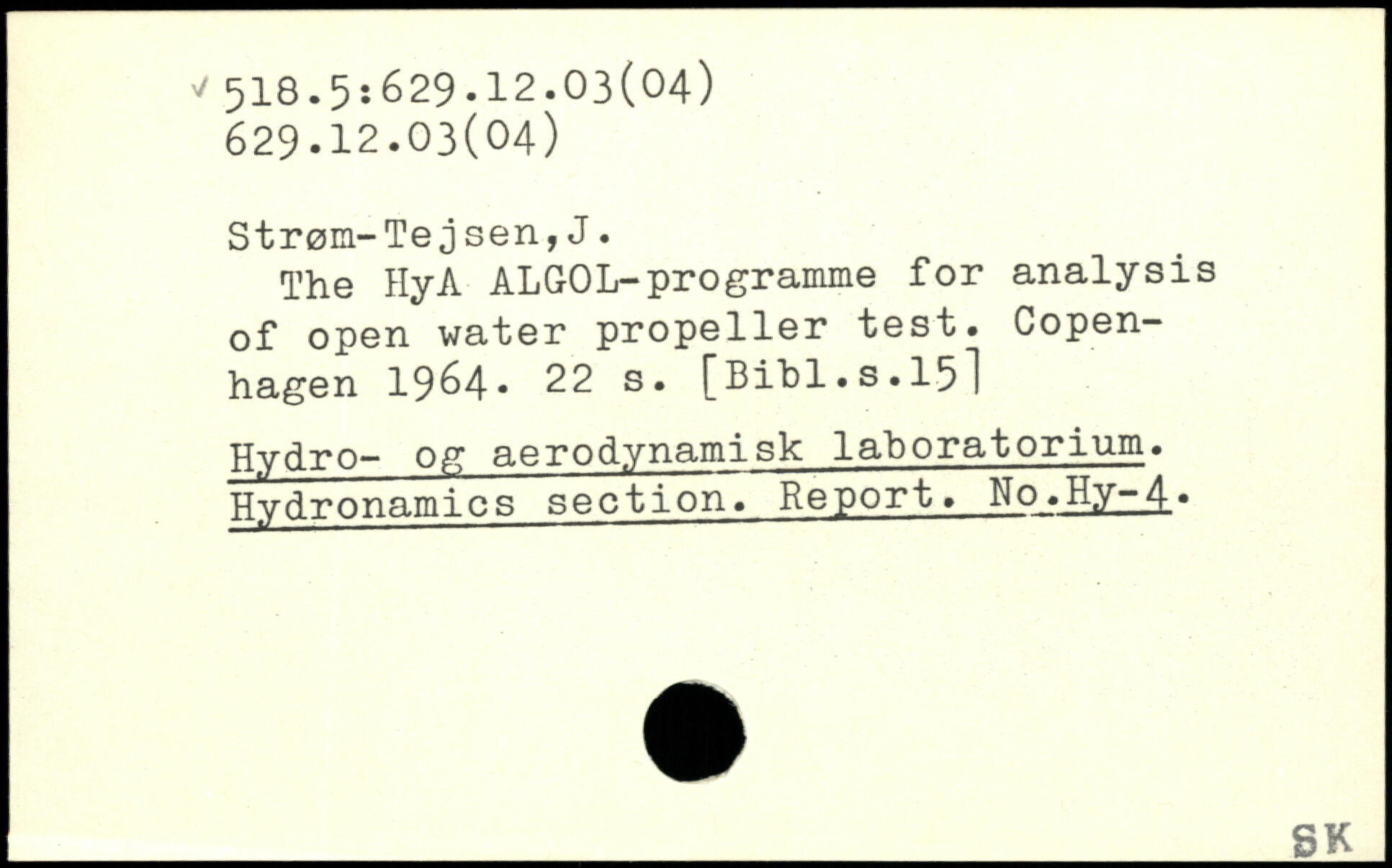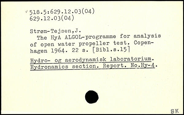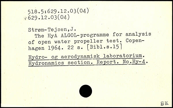 The HyA ALGOL-programme for analysis of open water propeller test.