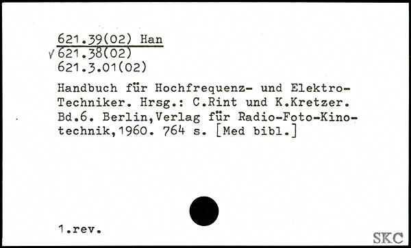Handbuch für Hochfrequenz- und Elektro-Techniker. Hrsg.: C.Bint und K.Kretzer.