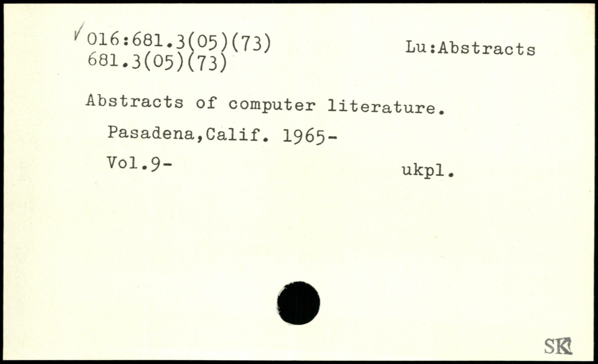 Abstracts of computer literature. Pasadena,Calif. 1965- Vol,9” ukpl. _SK>