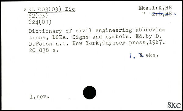 Dictionary of civil engineering abbreviations, DCEA. Signs and symbols. Ed.by D. D.Polon a.0.