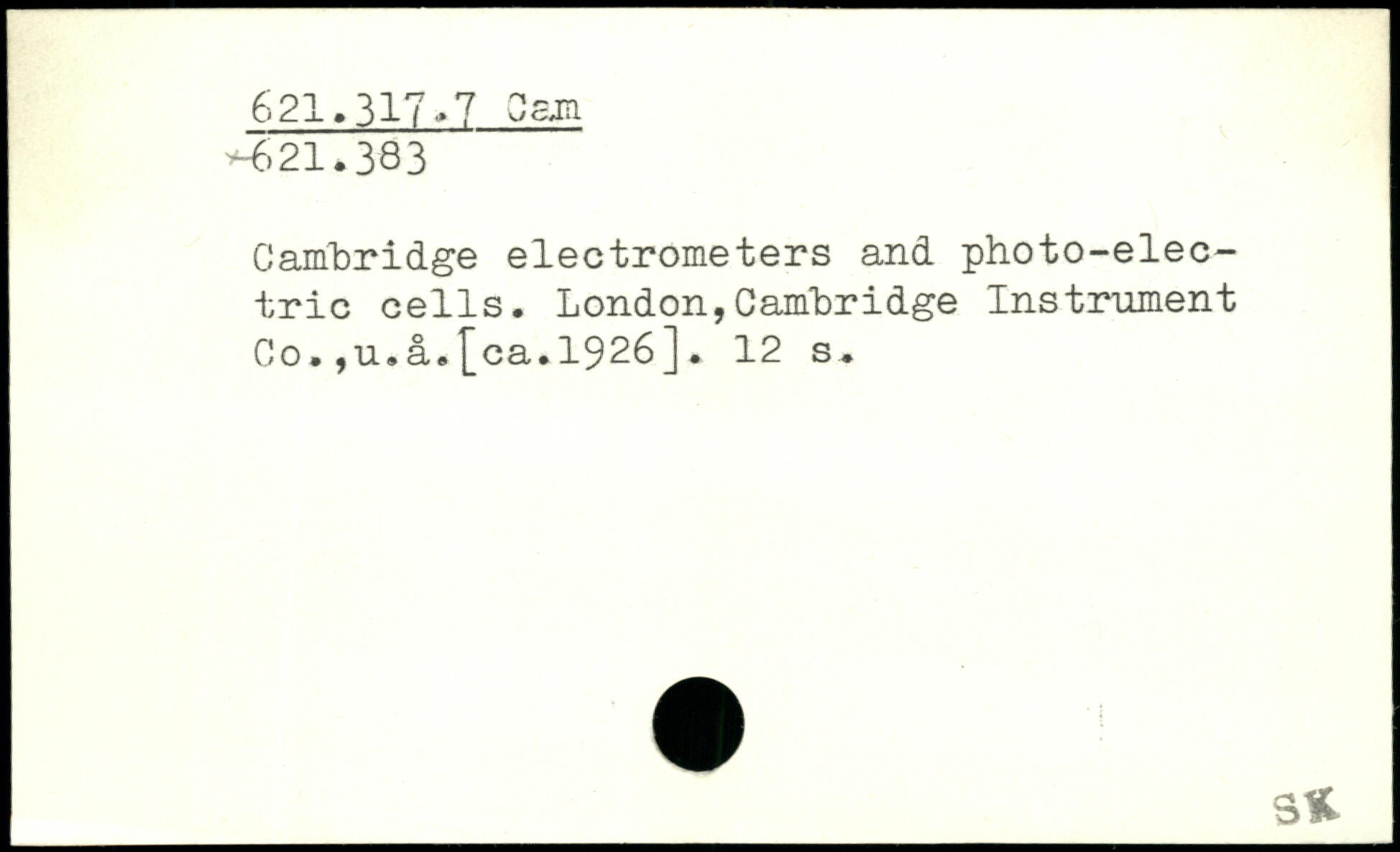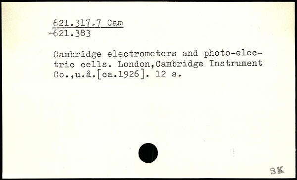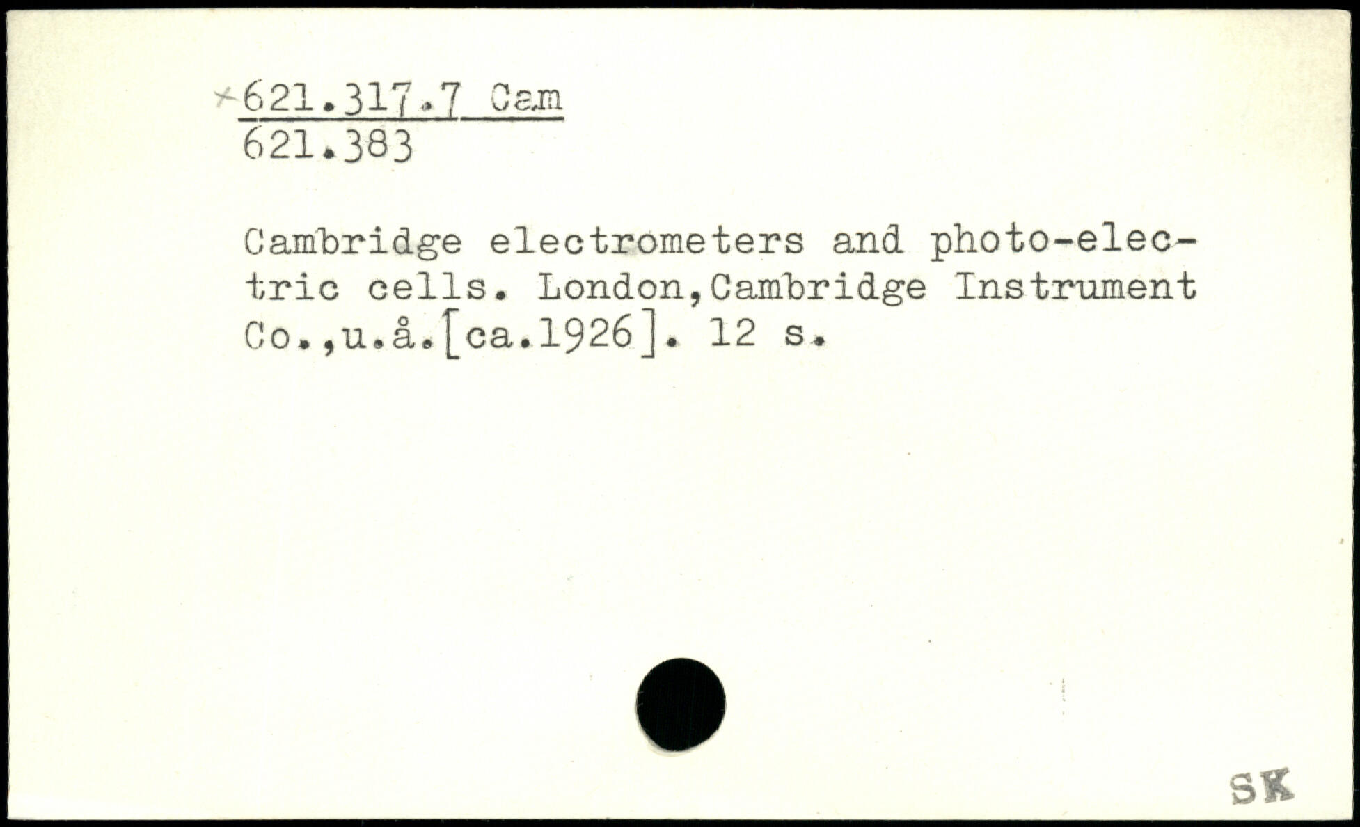 Cambridge electrometers and photo-electric cells. London,Cambridge Instrument Co.,u.a.[ca. 1926].