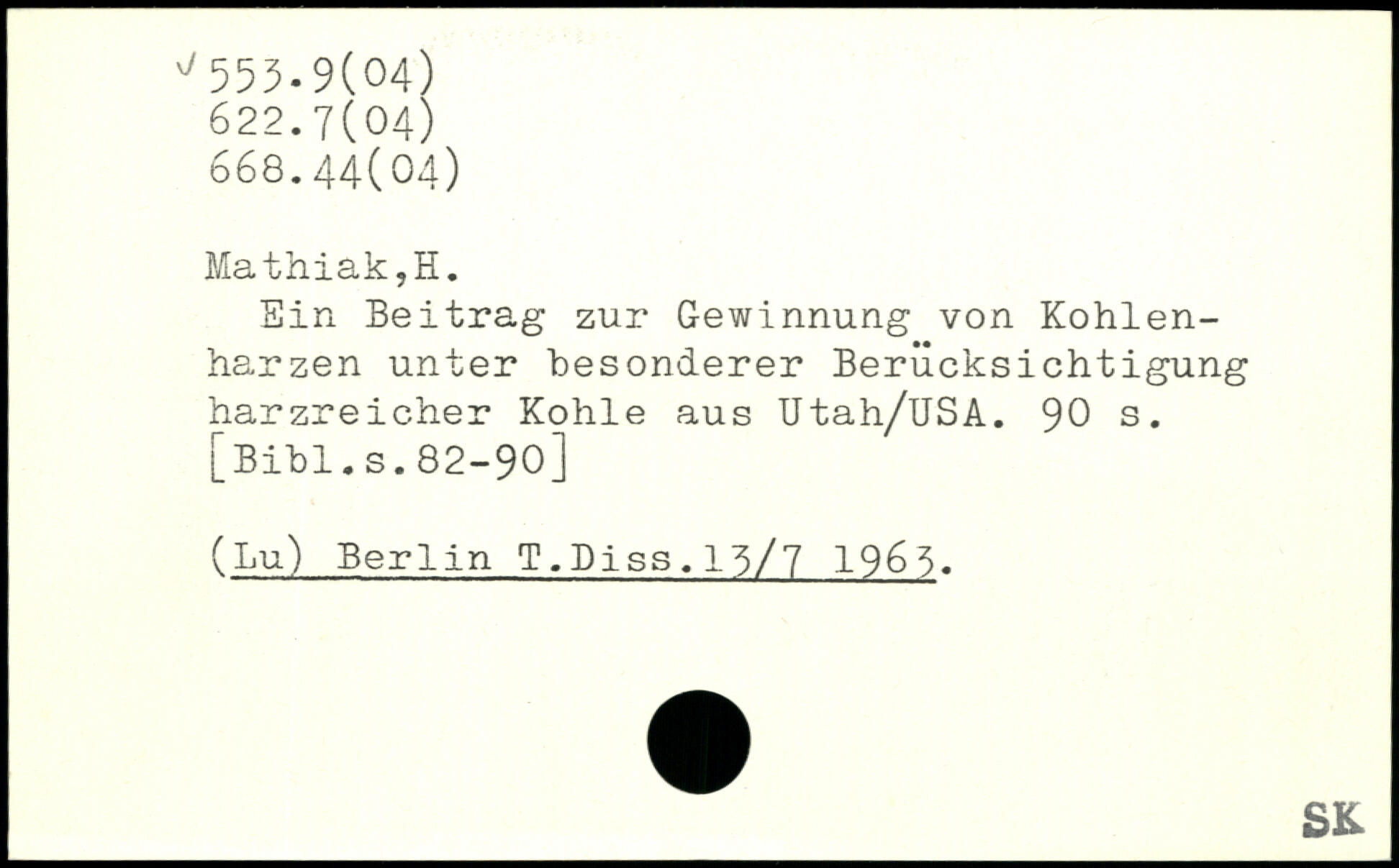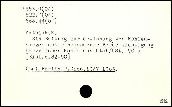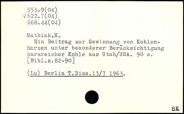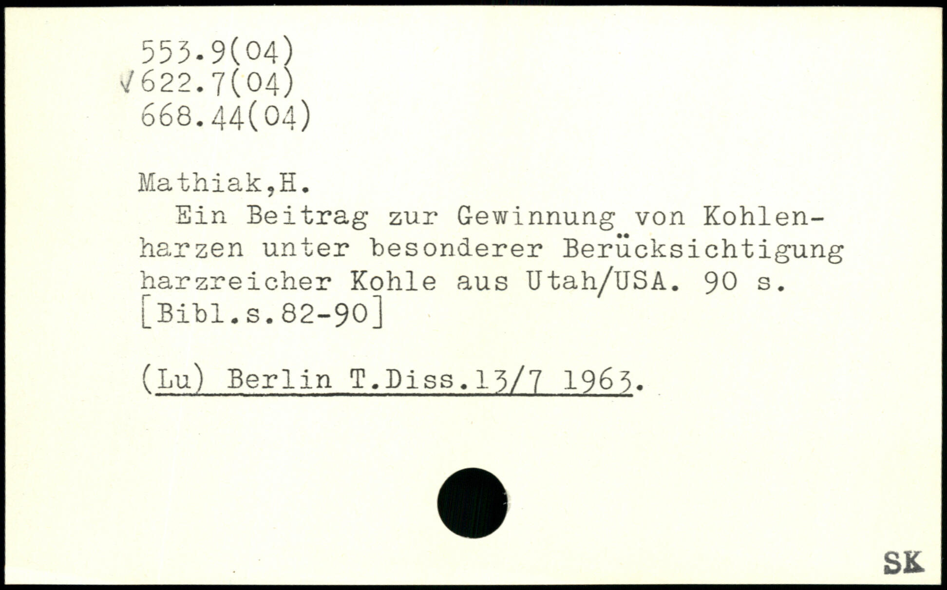 Sin Beitrag zur Gewinnung von Kohlenharzen unter besonderer Berücksichtigung harzreicher Kohle aus Utah/USA.