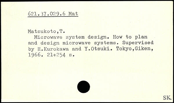 Microwave system design. How to plan and design microwave systems. Supervised by H.Kurokawa and Y.Otsuki.