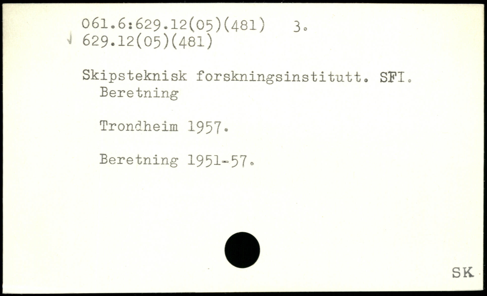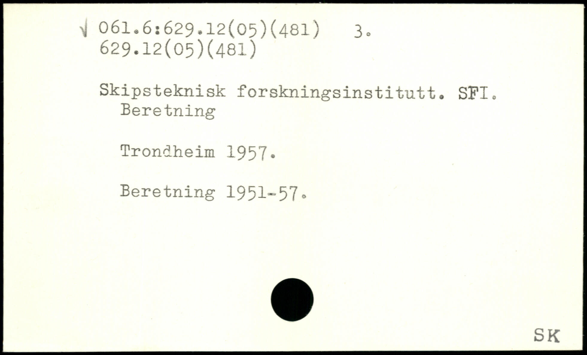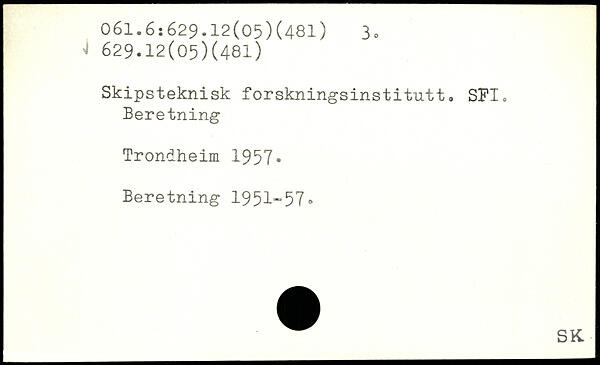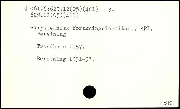 Skipsteknisk forskningsinstitutt. SFI. Beretning