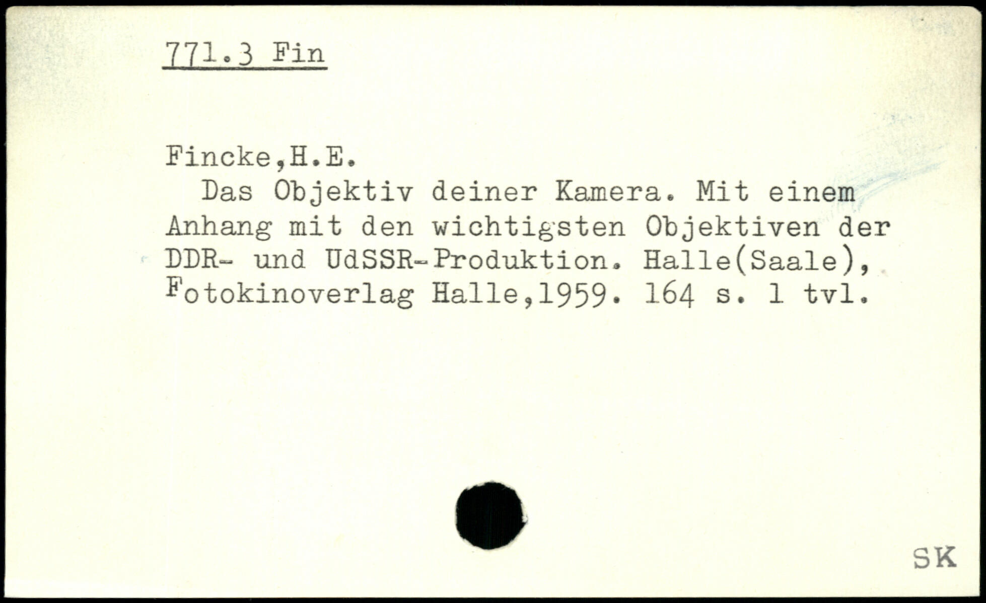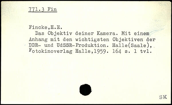 Das Objektiv deiner Kamera. Mit einem Anhang mit den wichtigsten Objektiven der DDR“ und UdSSR-Produktion. Halle(Saale), Fotokinoverlag Halle,1959.