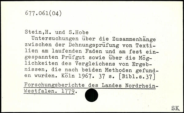 Untersuchungen über die Zusammenhänge zwischen der Dehnungsprüfung von Textilien am laufenden Faden und am fest eingespannten Prüfgut sowie über die Möglichkeiten des Vergleichens von Ergebnissen, die nach beiden Methoden gefunden wurden.