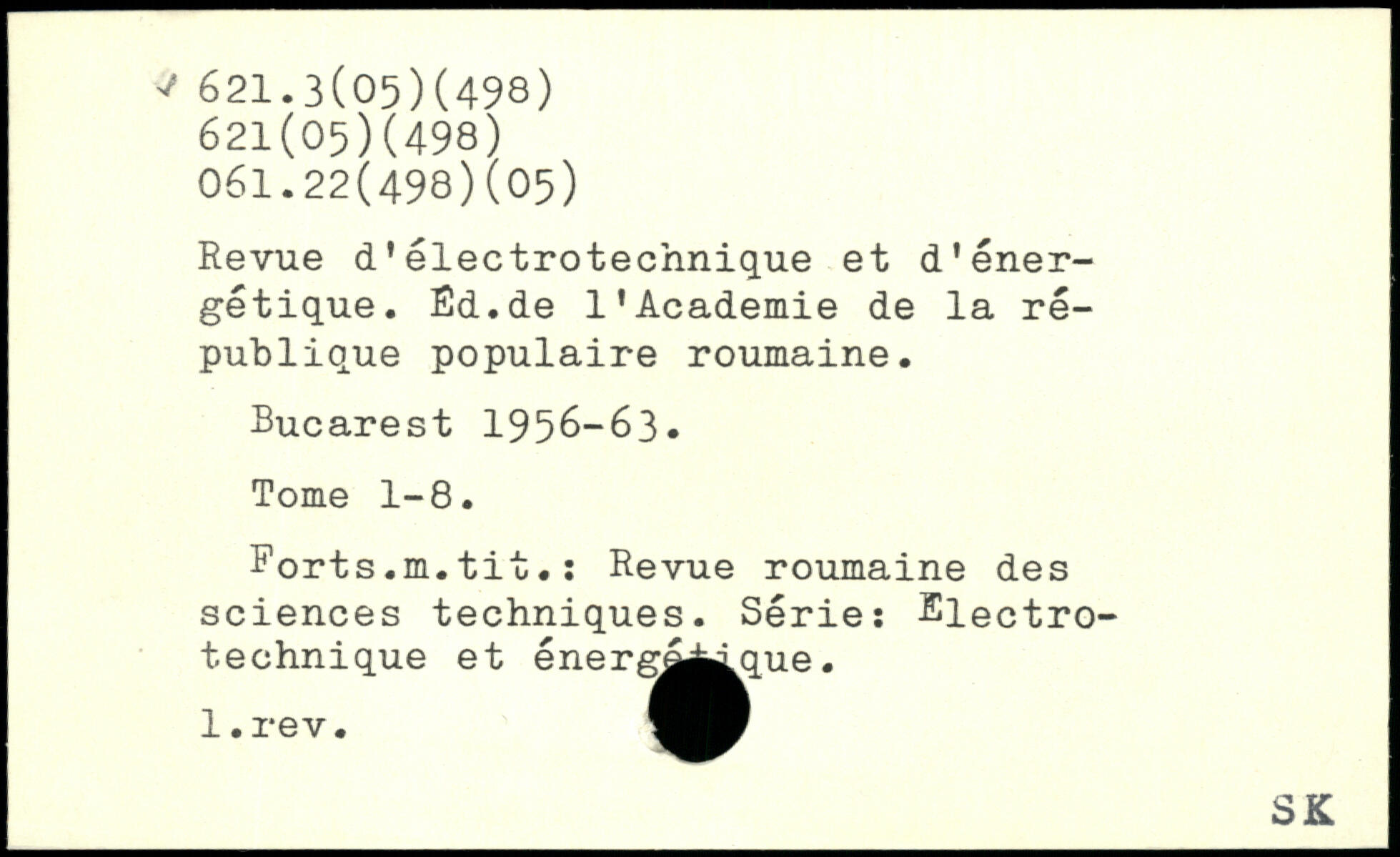 Revue d'électrotechnique et d’énergétique. Ëd.de l’Academie de la république populaire roumaine.
