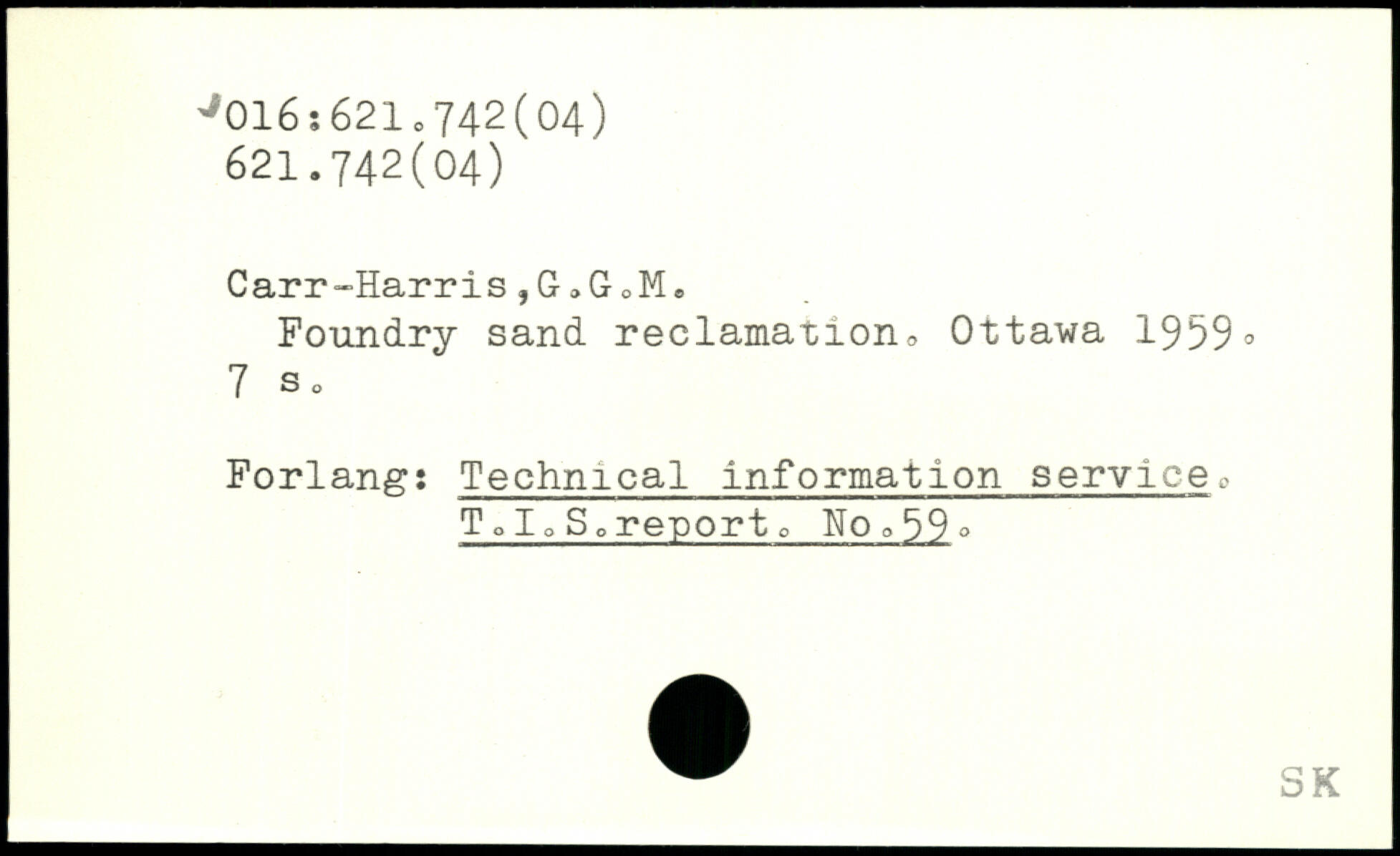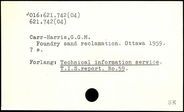 Carr-Harris jGaGcM,, Foundry sand reclamation