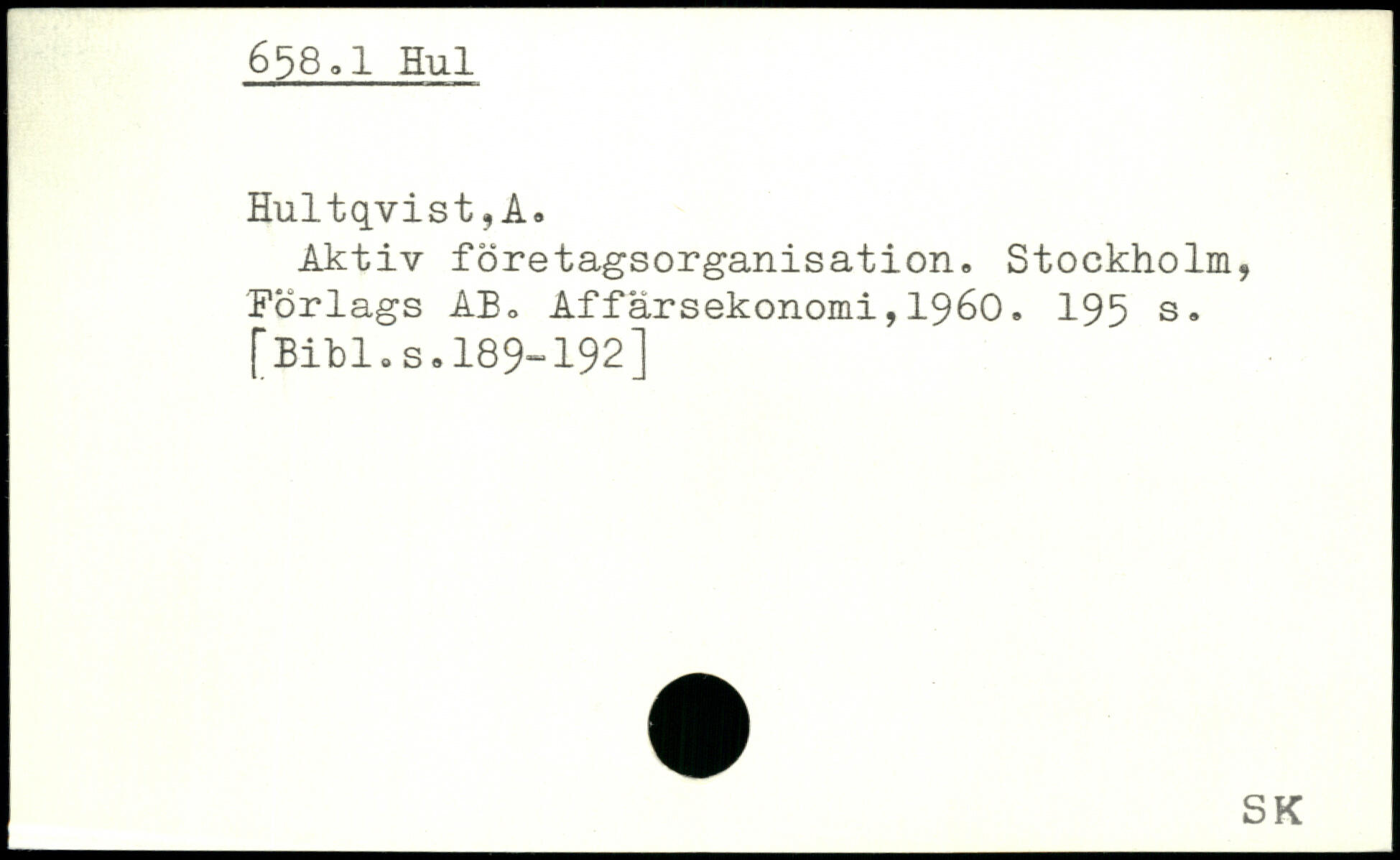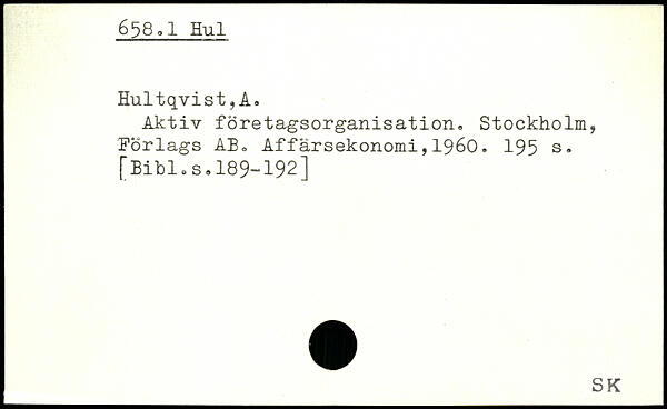 Aktiv företagsorganisation. Stockholm, Forlags AB. Affärsekonomi,1960.