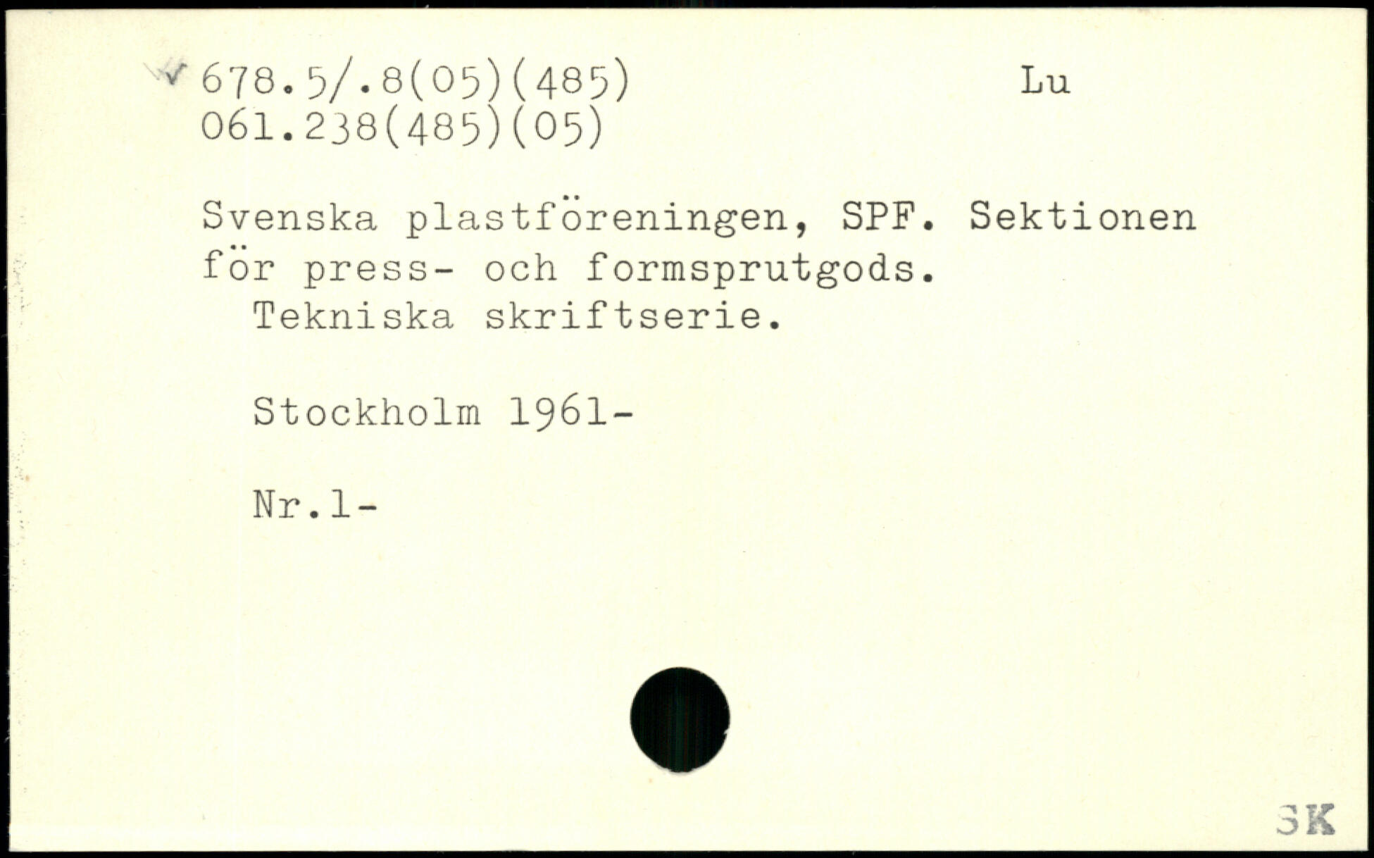 Svenska plastforeningen, SPF. Sektionen for press- och formsprutgods. Tekniska skriftserie.
