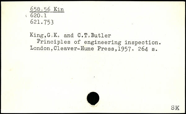 King,G,K0 and C.T,Butler Principles of engineering inspection. London.Cleaver-Hume Press,1957
