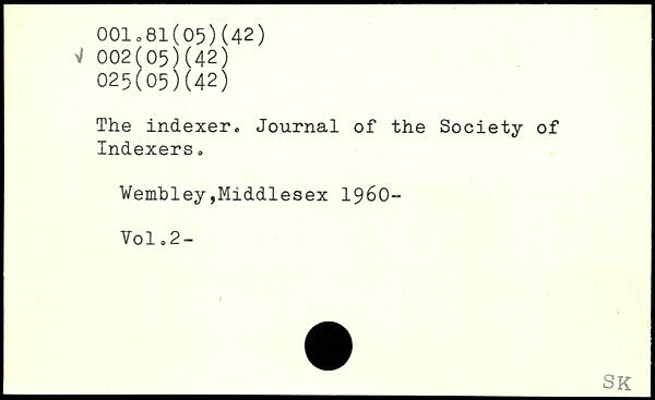 The indexer. Journal of the Society of Indexers. Wembley,Middlesex 1960-