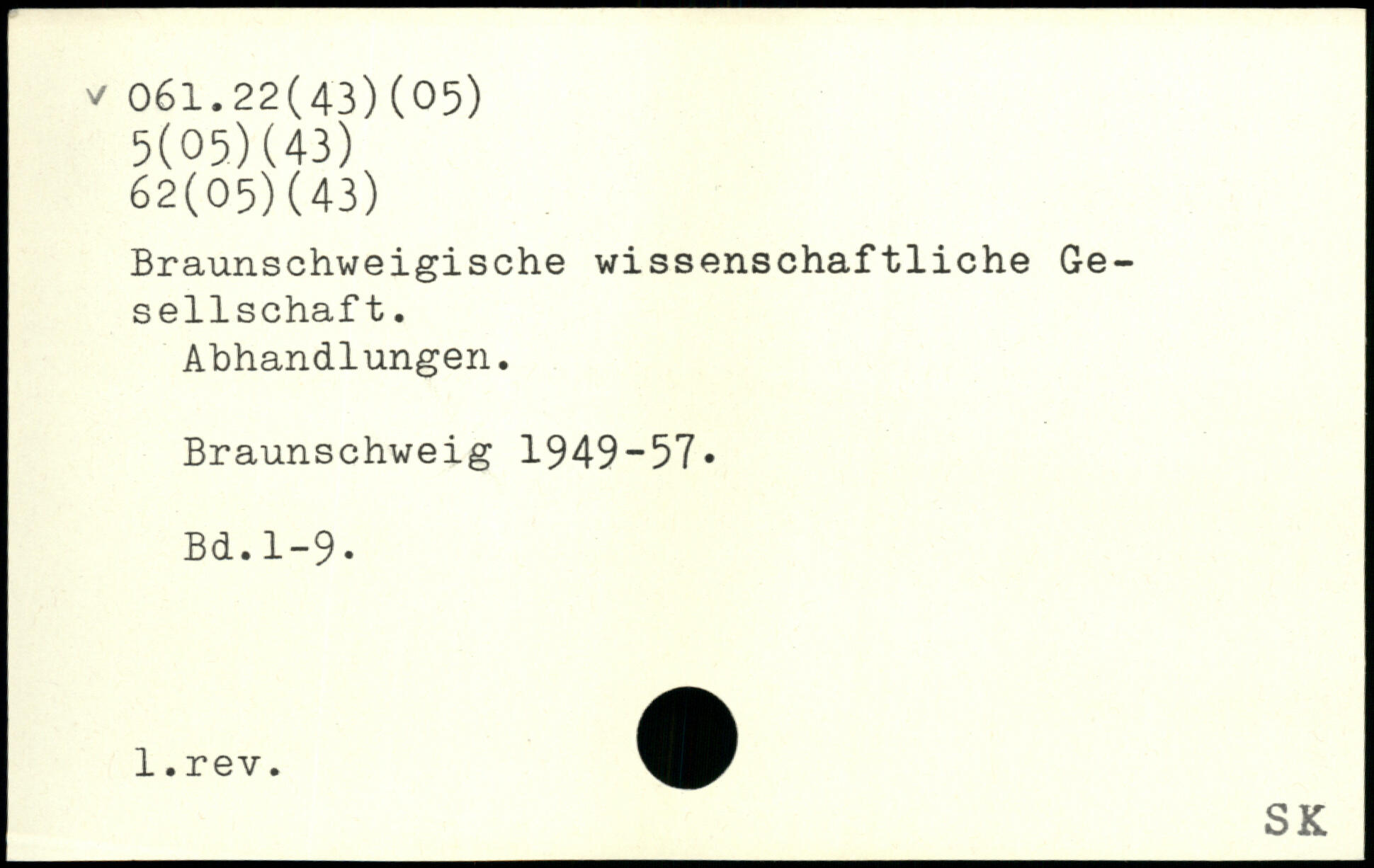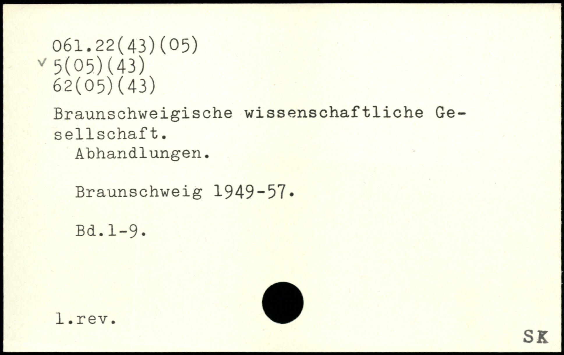 Braunschweigische wissenschaftliche Gesellschaft. Abhandlungen. Braunschweig 1949-57