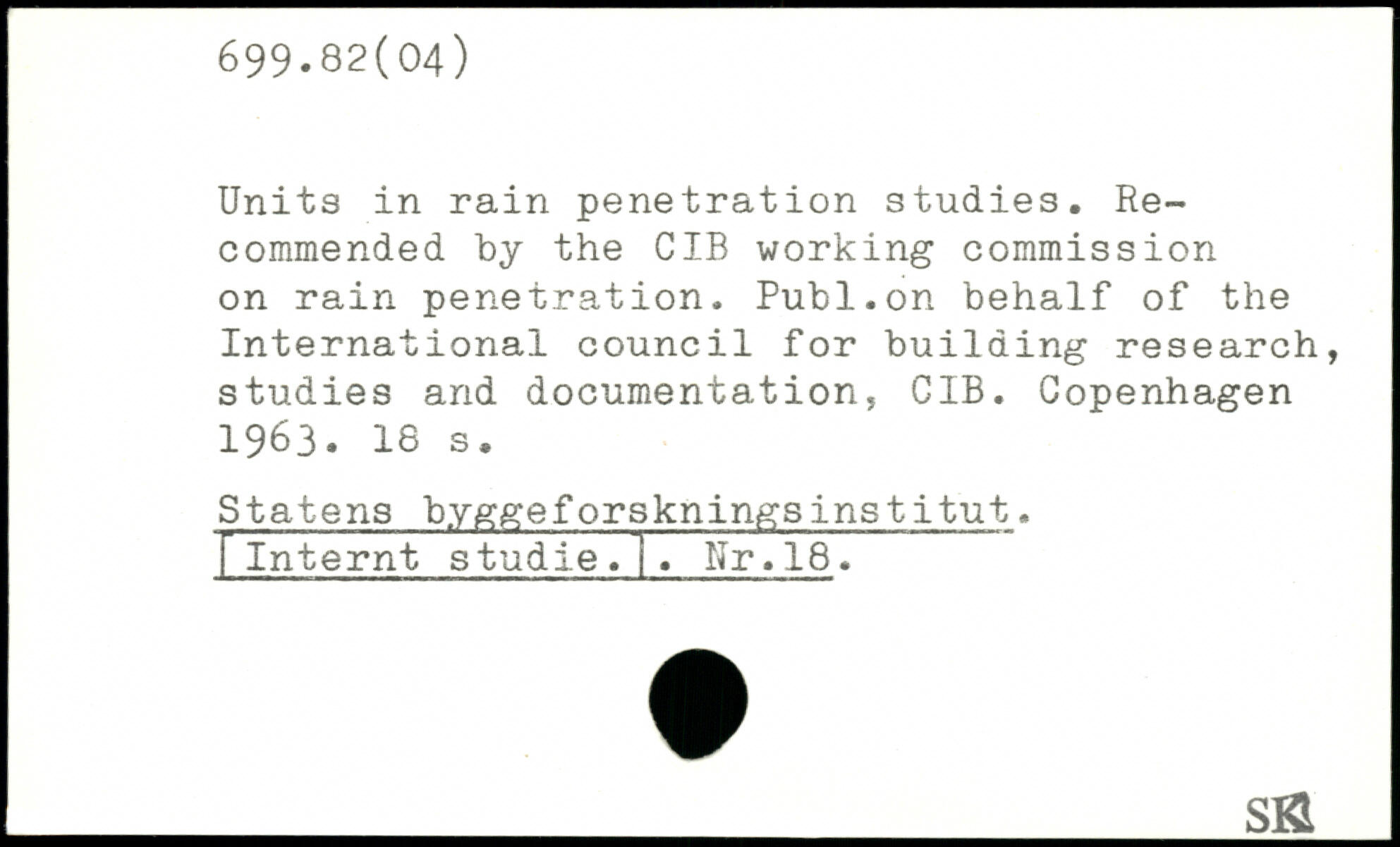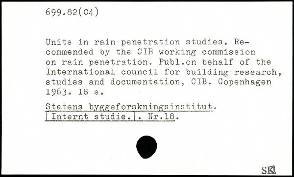 Units in rain penetration studies. Recommended by the CIB working commission on rain penetration. Publ.on behalf of the International council for building research, studies and documentation, CIB.