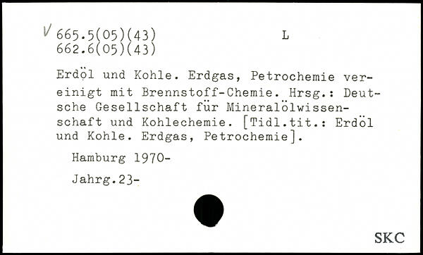 Erdöl und Kohle. Erdgas, Petrochemie vereinigt mit Brennstoff-Chemie. Hrsg.: Deutsche Gesellschaft für Mineralolwissen-schaft und Kohlechemie.