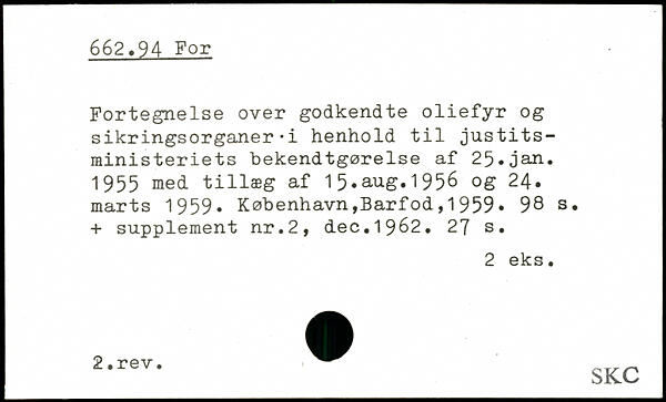 Fortegnelse over godkendte oliefyr og sikringsorganer.i henhold til justitsministeriets bekendtgørelse af 25.jan. 1955 med tillæg af i5.aug.1956 og 24. marts 1959.