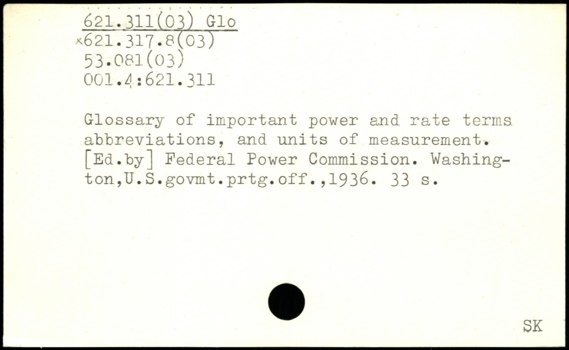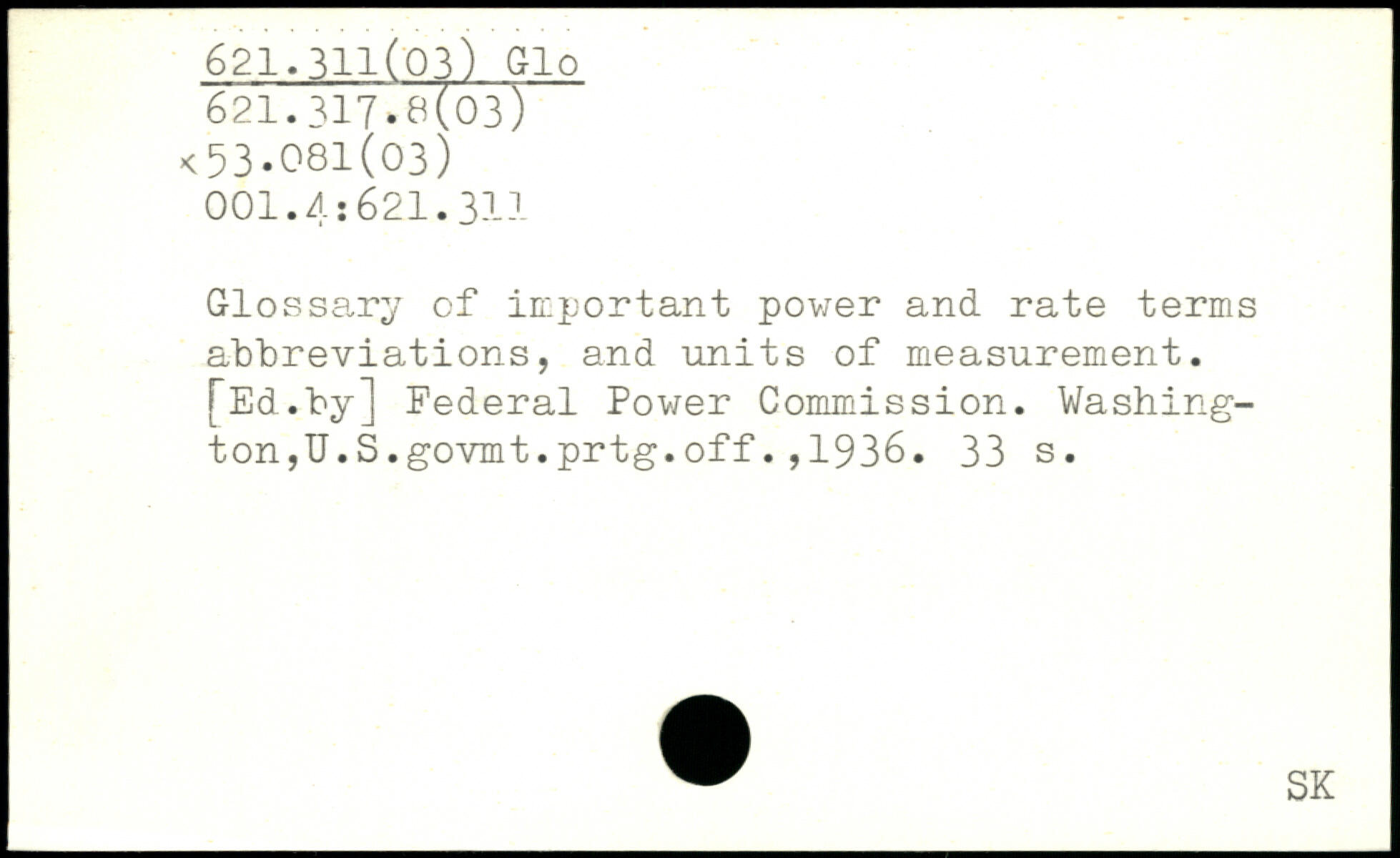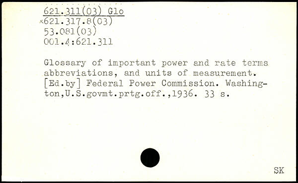 Glossary of important power and rate terms abbreviations, and units of measurement. [Ed.by] Federal Power Commission. Washington, U.S.govmt.prtg.off.,1936.