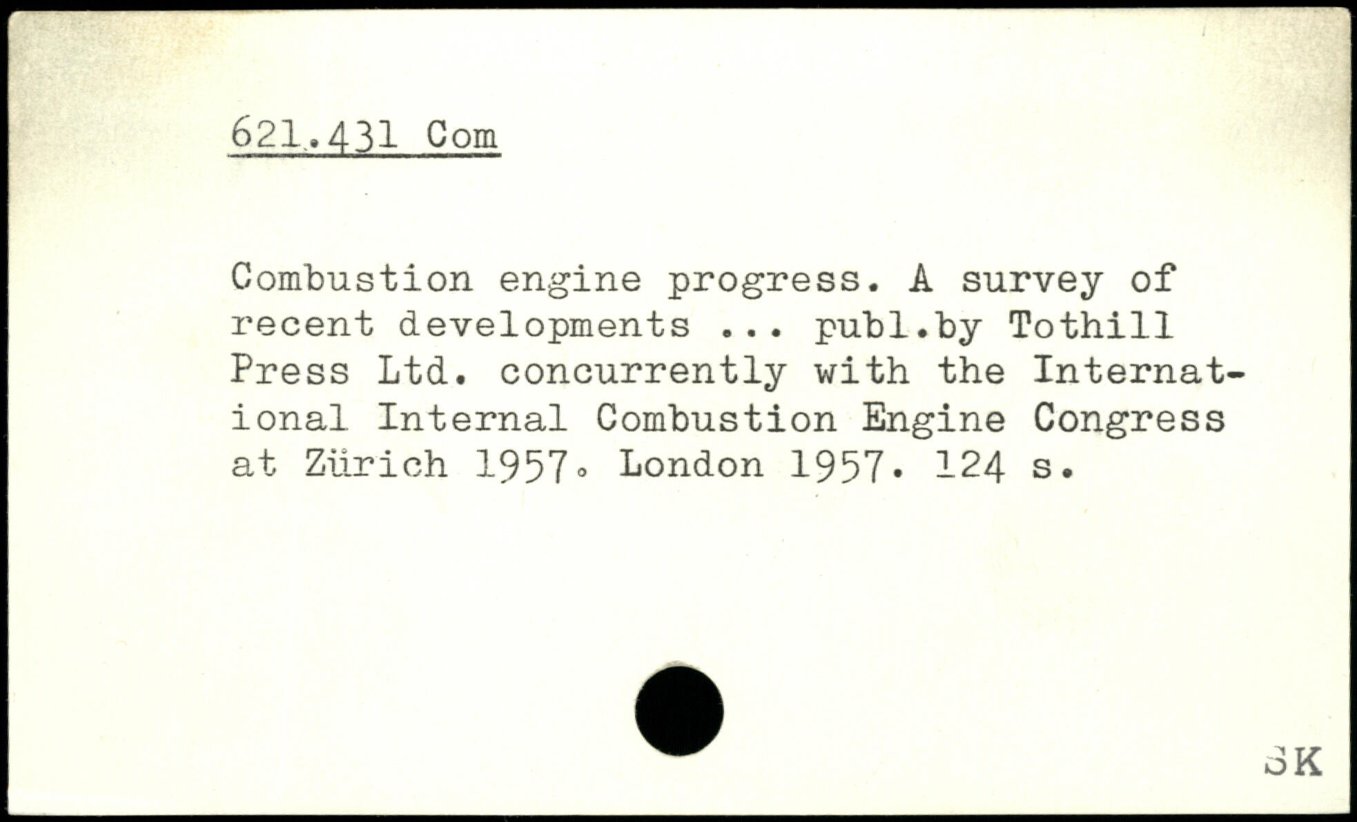 Combustion engine progress. A survey of recent developments ... publ.by Tothill Press Ltd. concurrently with the International Internal Combustion Engine Congress at Zurich 1957