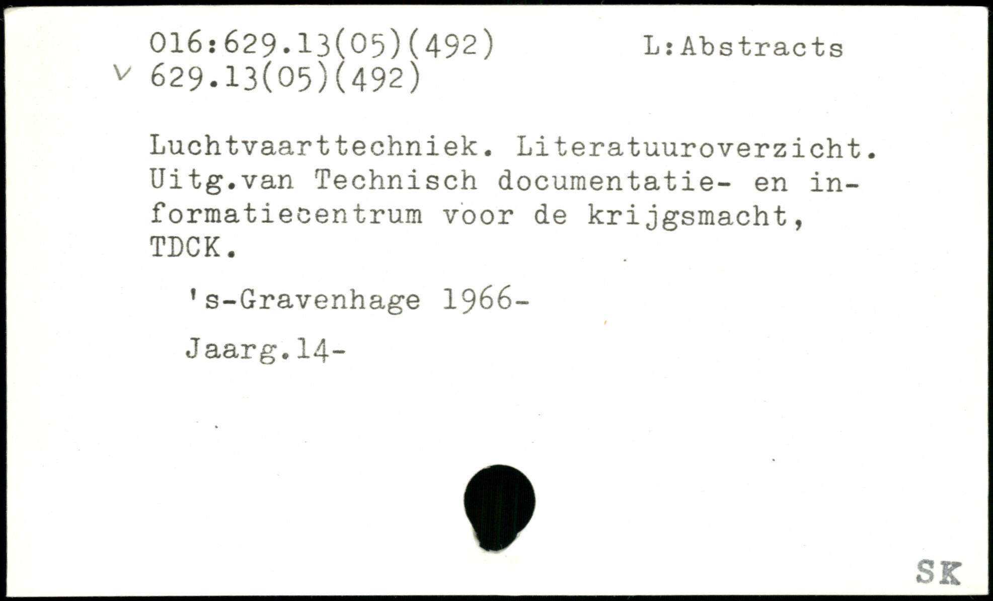 Luchtvaarttechniek. Literatuuroverzicht. Uitg.van Technisch documentatie- en in-formatiecentrum voor de krijgsmacht, TDCK. ’s-Gravenhage 1966-J aarg.14-